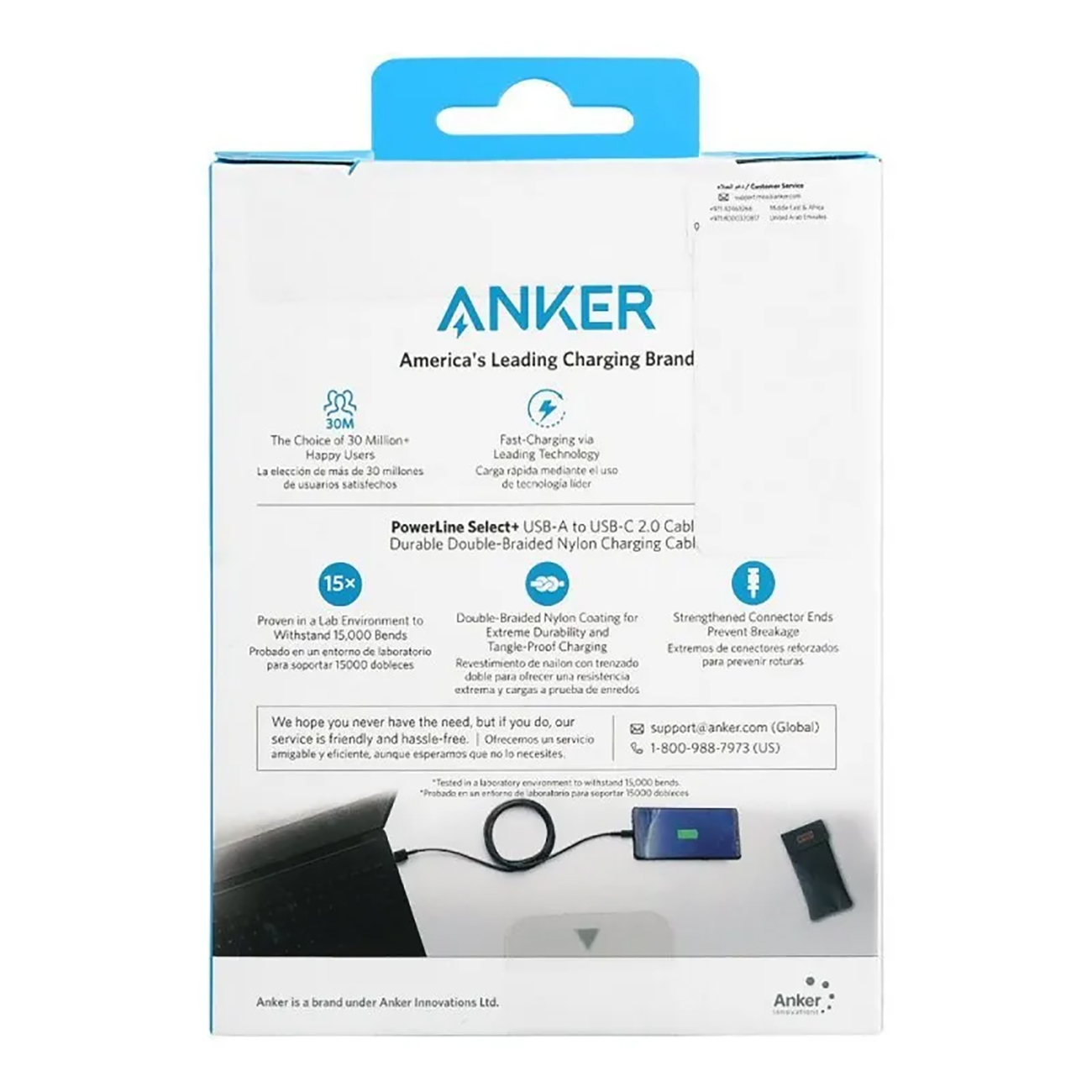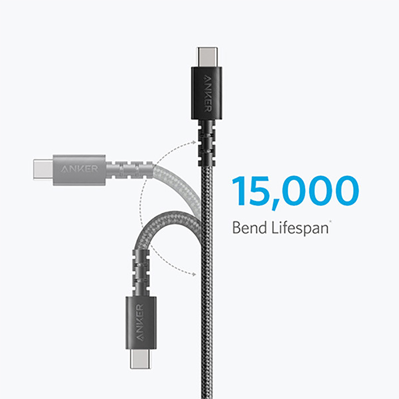 یکی از ویژگیهای قابل توجه کابل تایپ سی انکر مدل A8023H11 جنس سیم ضخیم و مقاومت آن میباشد. Anker کابل را از روکش نایلونی دوتایی بافته شده و کانکتور فلزی مقاوم ساخته تا از صدماتی همچون کشش، پارگی، خمیدگی، گرهخوردگی و... مصون بماند. A8023H11 از 15000 بار تست خمش سربلند بیرون آمده؛ قوی و محکم است و عمر طولانی دارد.