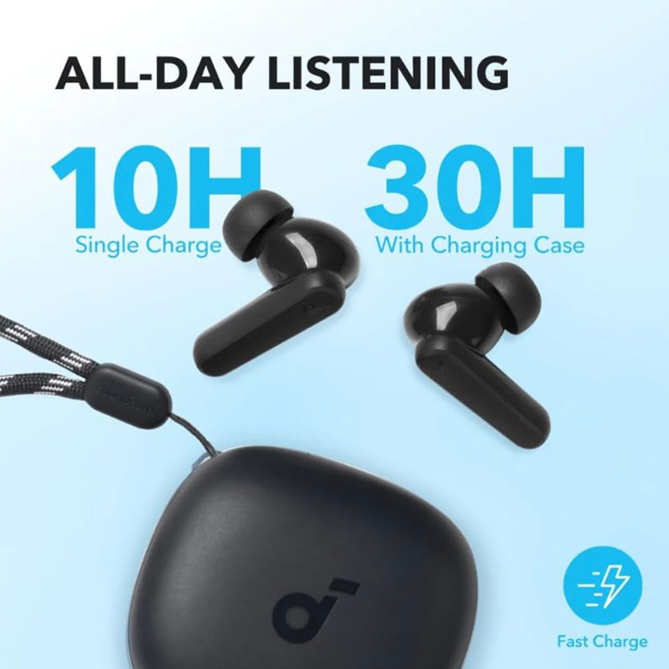 با یک بار شارژ 10 ساعته این هندزفری می توانید به مدت 30 ساعت از هندزفری برای مکالمه و شنیدن موزیک استفاده کنید. همچنین این ایرفون انکر دارای قابلیت شارژ سریع است به طوری که با شارژ سریع 10 دقیقهای به شما 2 ساعت زمان استفاده میدهد.