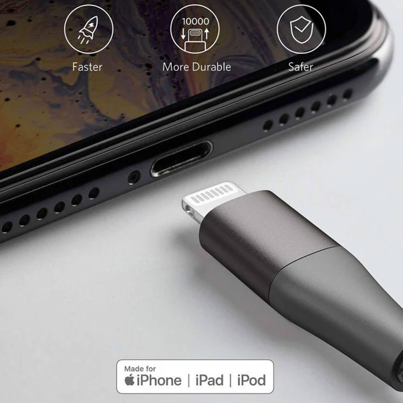 هر کابل حاوی یک تراشه مجوز منحصر به فرد صادر شده توسط اپل برای اطمینان از سازگاری 100٪ با هر دستگاه لایتنینگ است. این کابل شارژ با iPhone X / 8 / 8 Plus / iPhone 6s / 6s Plus / 6 / 6 Plus / 5s / 5c / 5 iPad Air / Air 2 / Pro، iPad mini / mini 2 / mini 3 / mini 4، iPad (نسل چهارم) iPod (نسل هفتم) و iPod touch (نسل پنجم / ششم) سازگار است.