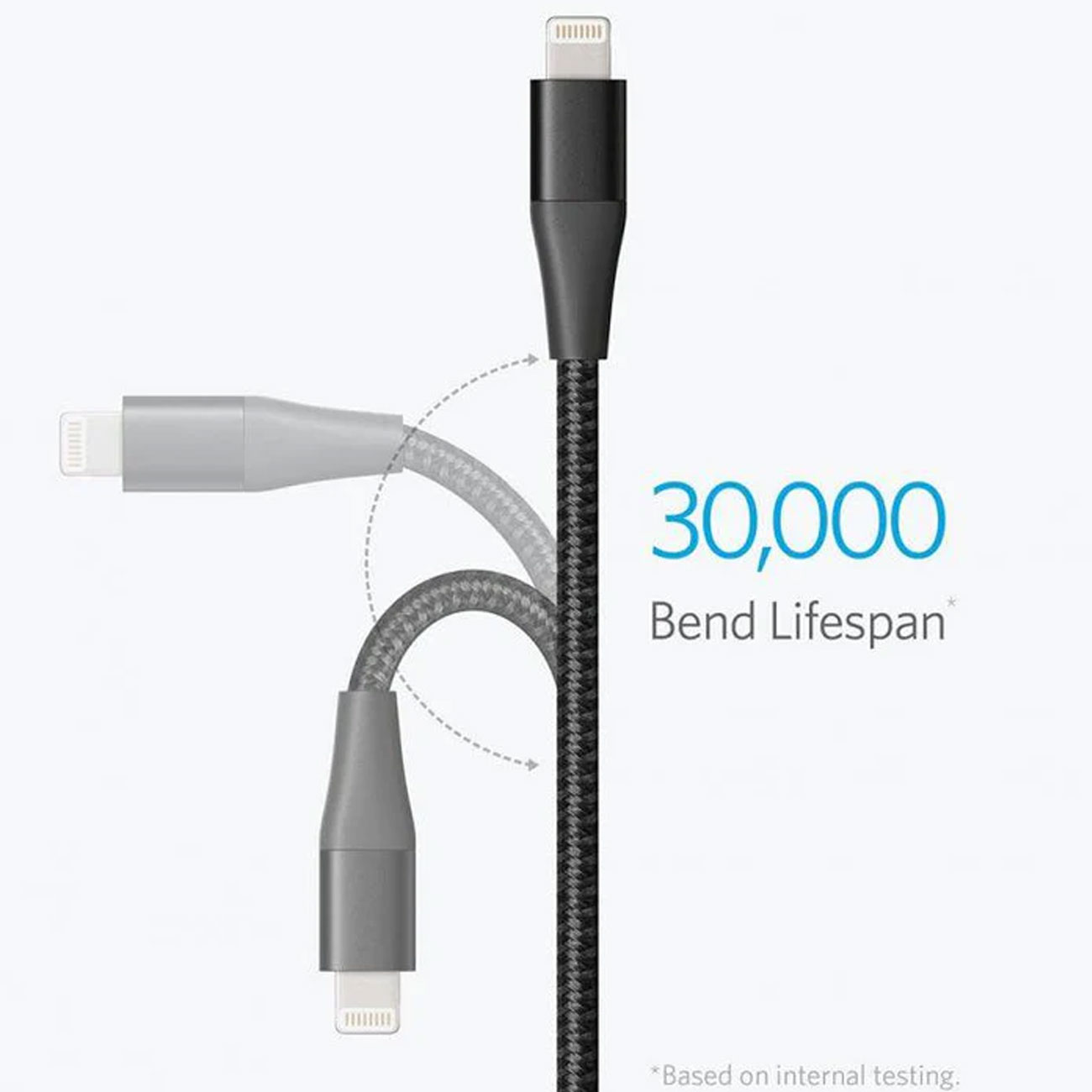 به گفته انکر، این کابل در برابر تست خم شوندگی، بیش از 5000 بار خم شده است و هیچ آسیب یا تغییری در عملکرد آن مشاهده نشده است. سیم شارژر لایتنینگ انکر PowerLine Lightning یکی از سخت ترین کابل هایی است که تا به حال دیده اید!