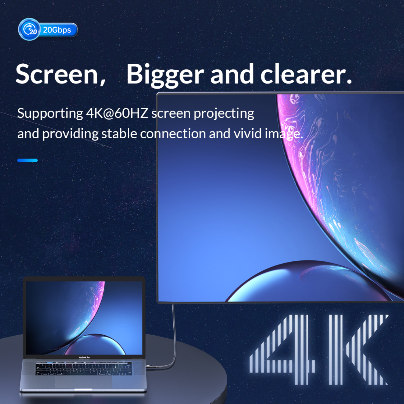 کابل دوسر تایپسی شارژ سریع اوریکو CL32-10 علاوه بر انتقال داده، توانایی پشتیبانی از کیفیت تصویر 4K@60Hz را نیز دارد. این ویژگی به شما این امکان را میدهد که تصاویر با کیفیت بالا را بدون هیچ گونه افت کیفیتی مشاهده کنید. برای استفاده از این ویژگی، مجدداً باید اطمینان حاصل شود که کابلهای اصلی و جانبی نیز از سرعت انتقال20 گیگابیت بر ثانیه پشتیبانی کنند.