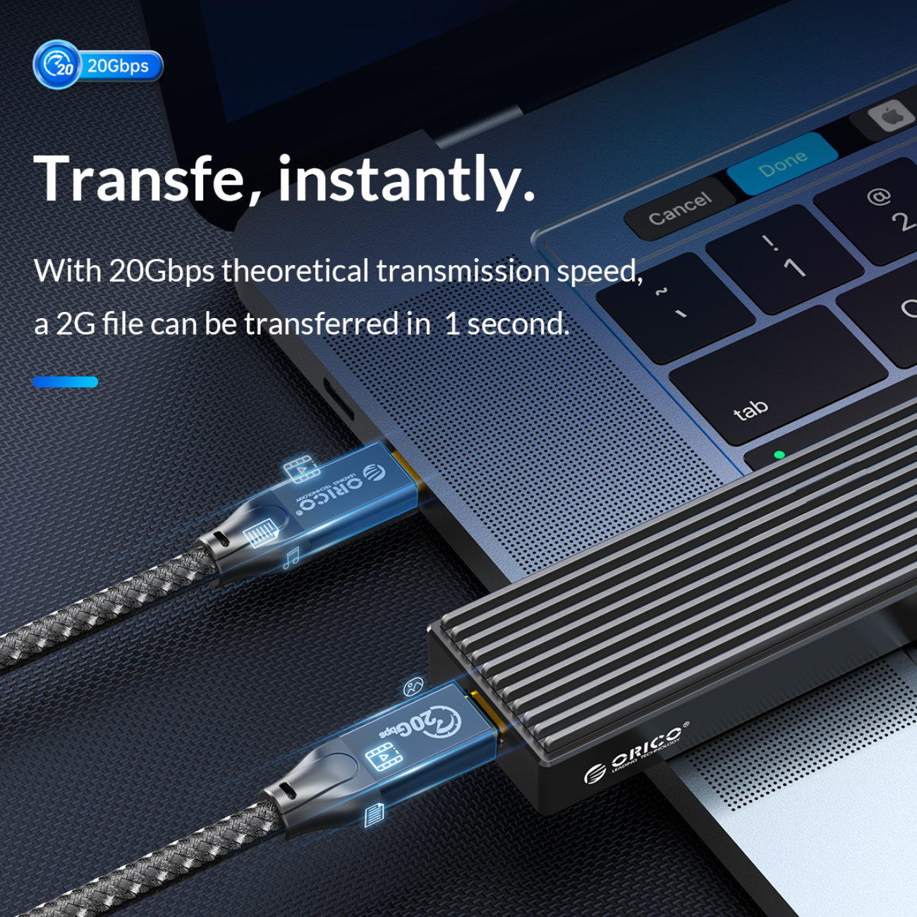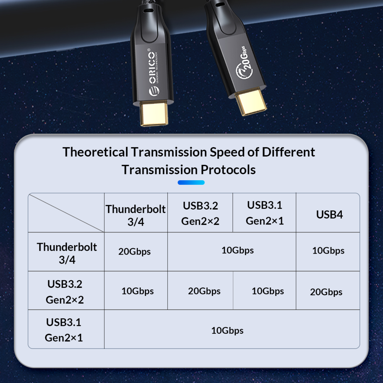 کابل دو سر تایپسی اوریکو مدل CL32-10 با پشتیبانی از USB3.2 Gen2، یکی از ابزارهای حرفهای برای انتقال سریع دادهها با سرعت 20 گیگابیت بر ثانیه است. این ویژگی به شما این امکان را میدهد که فایلهای حجیم را به آسانی و در کمترین زمان ممکن منتقل کنید؛ بهعنوان مثال، انتقال 2 گیگابایت اطلاعات تنها در یک ثانیه انجام میشود. برای بهرهمندی کامل از این سرعت، ضروری است که کابلهای اصلی و دیگر تجهیزات جانبی نیز با این استاندارد سازگاری داشته باشند.
