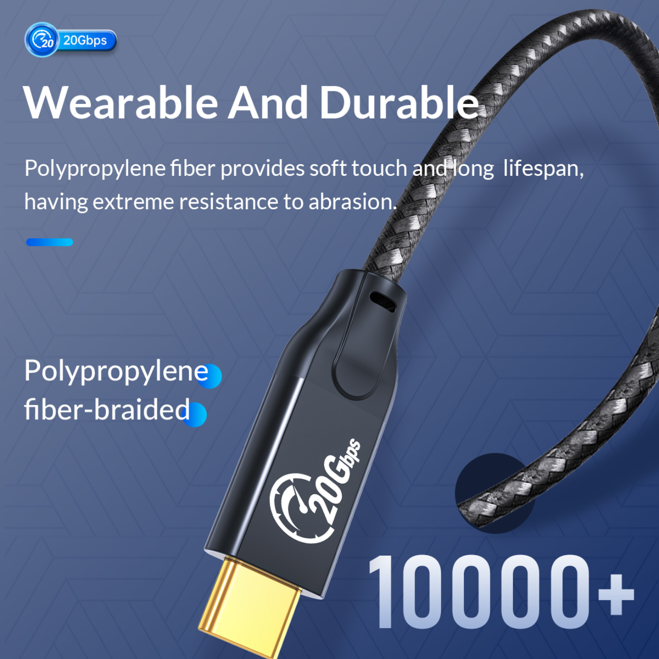 کابل انتقال اطلاعات اوریکو ORICO USB-C 3.2 Gen2*2 high-speed data cable CL32-10 از متریال با کیفیتی ساخته شده است که به دوام و قابلیت اطمینان آن افزوده است. اتصال سیم تقویت شده این کابل توانسته است 10000 بار آزمون خمیدگی را با موفقیت پشت سر بگذارد. همچنین، الیاف پلی پروپیلن بافته شده در این کابل، به آن دوام و طول عمر بالایی بخشیده است. روکش آلیاژ آلومینیوم نیز به خنک ماندن سطح کابل کمک میکند و از داغ شدن آن جلوگیری میکند.