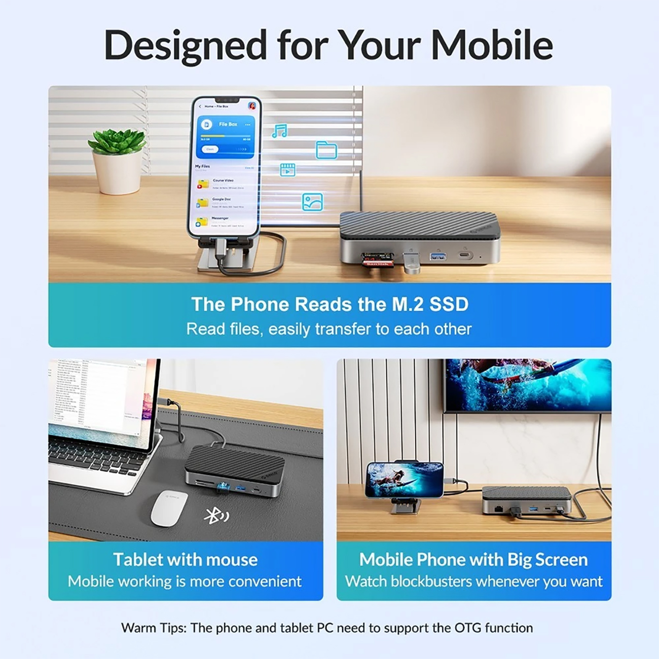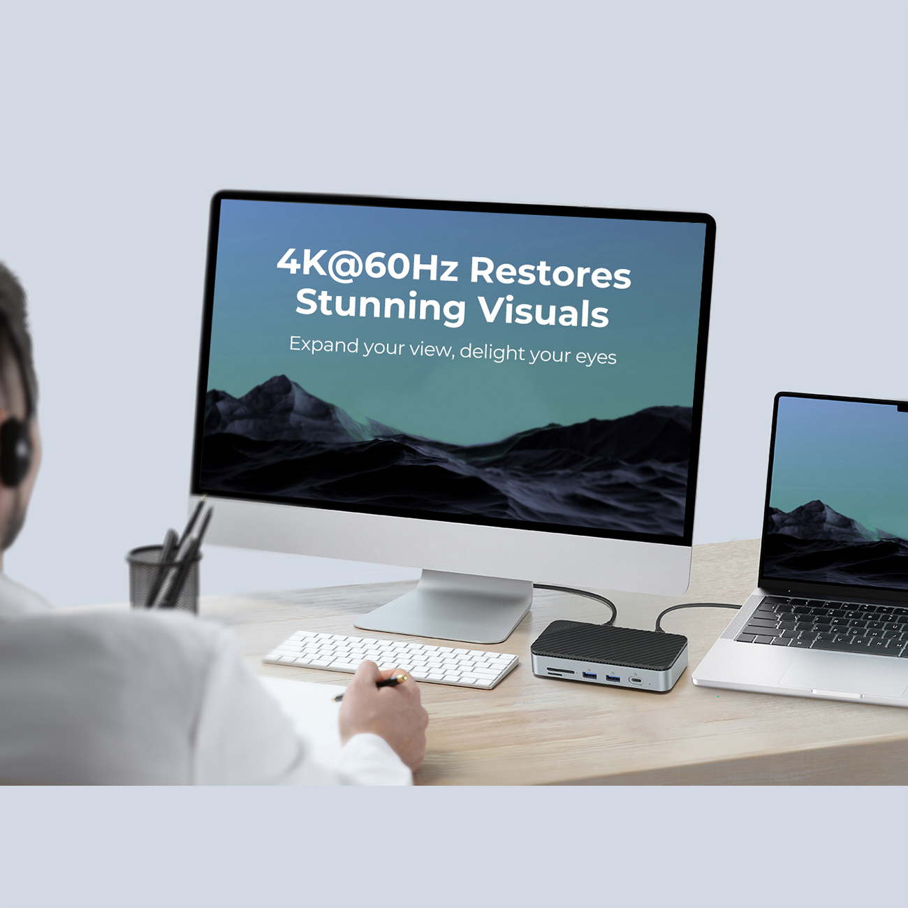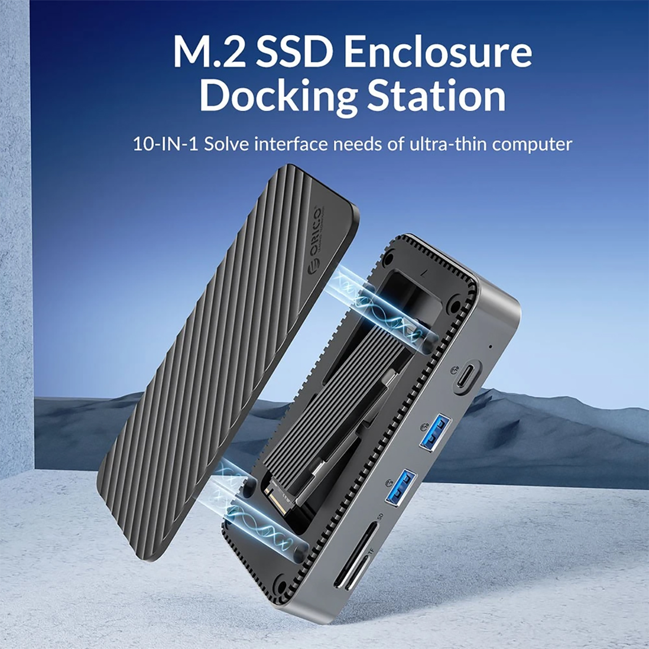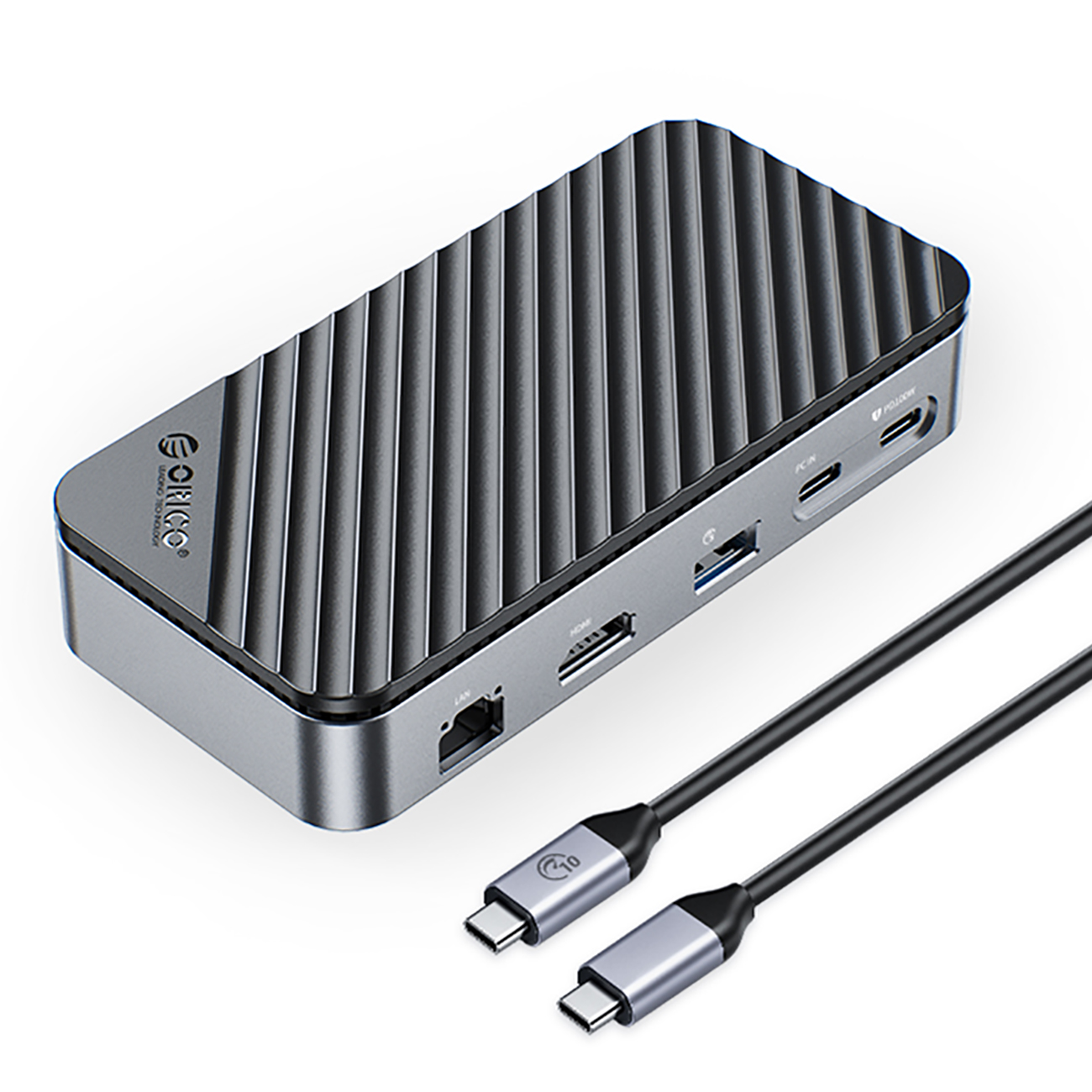 هاب مک بوک اوریکو مدل DPM2P9-BK-BP از 10 پورت کاربردی تشکیل شده است. پورتهایی نظیر Type-C (100W)*1، 10Gbps USB3.2 Gen2-A*1، 10Gbps Type-C*1، 5Gbps USB3.0-A*2، 4K@60Hz HDMI*1، 1000Mbps RJ45*1، SD اسلات 3.0*1، اسلات TF 3.0*1، در این هاب تعبیه شده و امکانات قابل قبولی را در اختیار کاربر قرار میدهد: