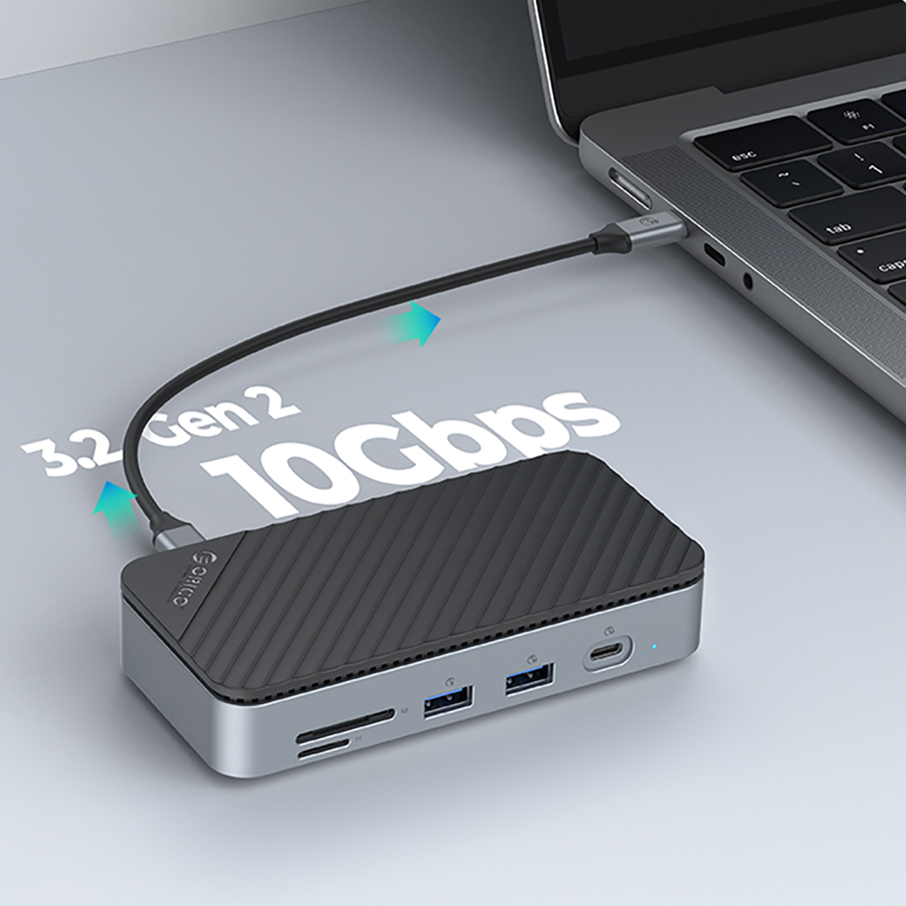 هاب اوریکو از دیسک U، هارد دیسک موبایل و سایر دستگاهها، سرعت انتقال رابط USB-A3.2 Gen2 برابر با 10 گیگابیت بر ثانیه، و از سرعت انتقال رابط USB-A3 2 x تا 5 گیگابیت بر ثانیه پشتیبانی میکند.