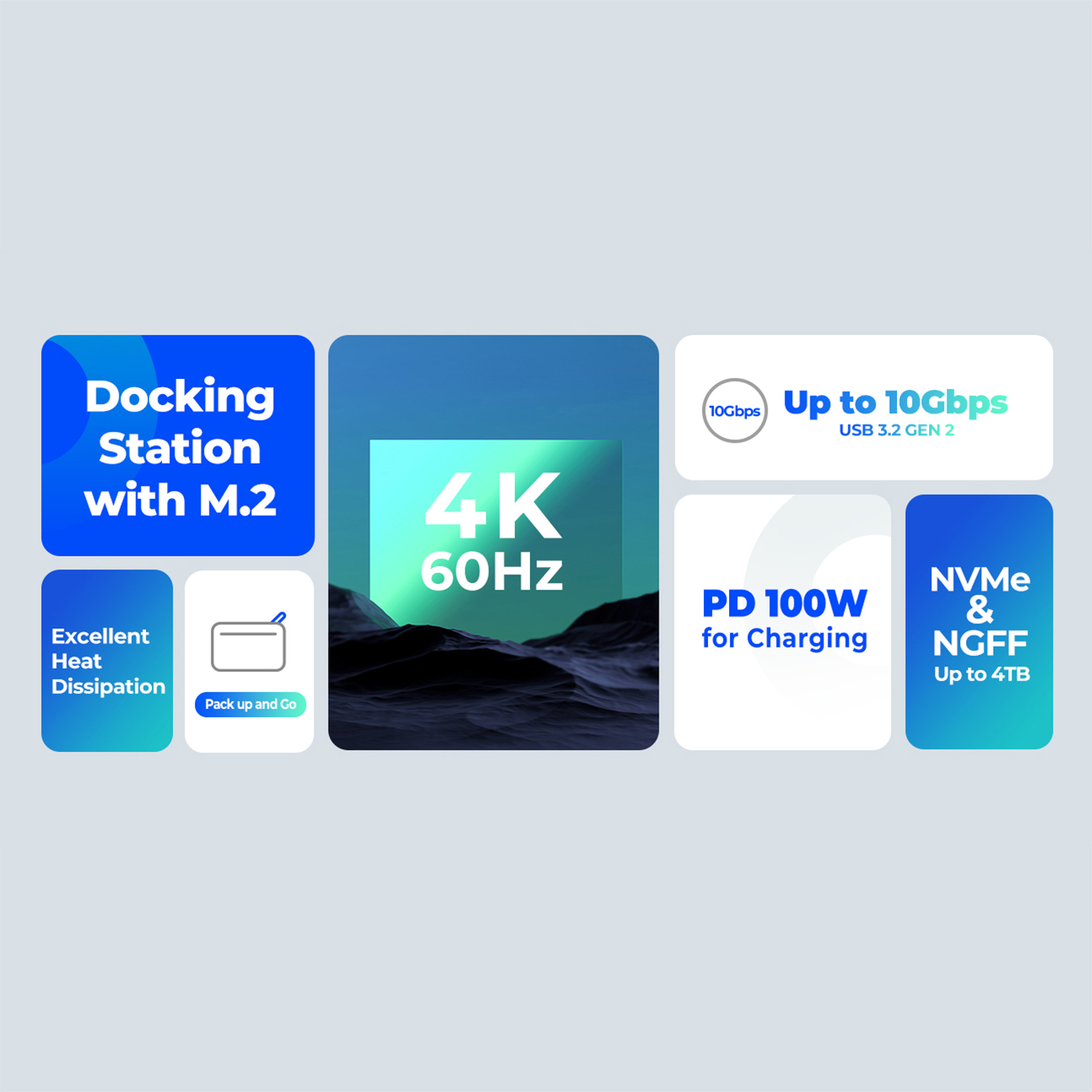 | نوع درگاهها | Type-C (100W)*1، 10Gbps USB3.2 Gen2-A*1، 10Gbps Type-C*1، 5Gbps USB3.0-A*2، 4K@60Hz HDMI*1، 1000Mbps RJ45*1، SD اسلات 3.0*1، اسلات TF 3.0*1، رابط M.2 NVMe/NGFF*1 |