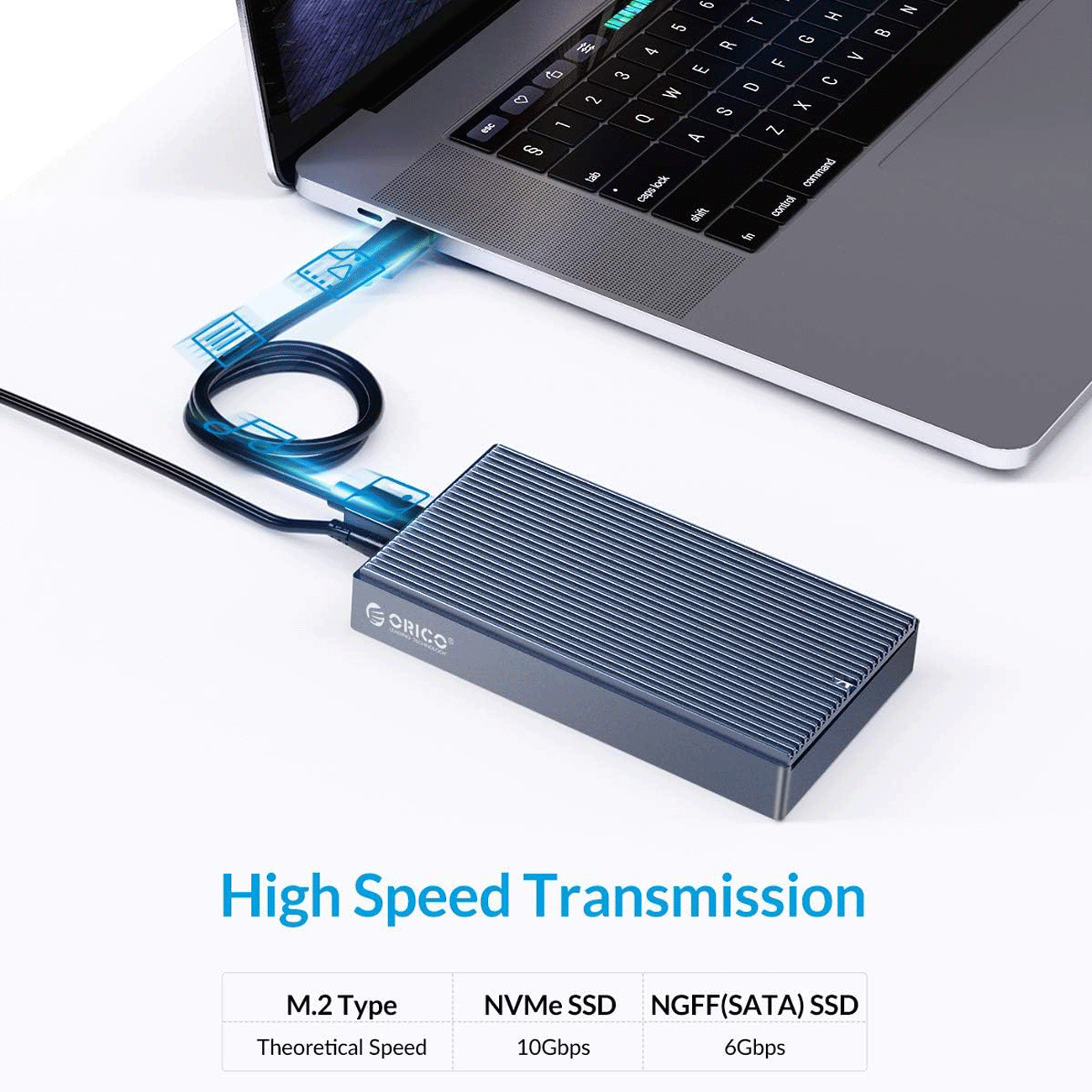 یک از ویژگیهای برجسته این قاب SSD و هارد USB3.1 اوریکو، پشتیبانی از سرعت انتقال 10 گیگابیت در ثانیه و حداکثر ظرفیت پشتیبانی آن دو عدد کارت دو ترابایتی است. این به معنای انتقال سریع فایلهای بزرگ است؛ به طور مثال، امکان انتقال 1 گیگابایت داده در تنها 2 ثانیه. این ویژگی بهخصوص برای افرادی که با دادههای سنگین کار میکنند، بسیار حائز اهمیت است.