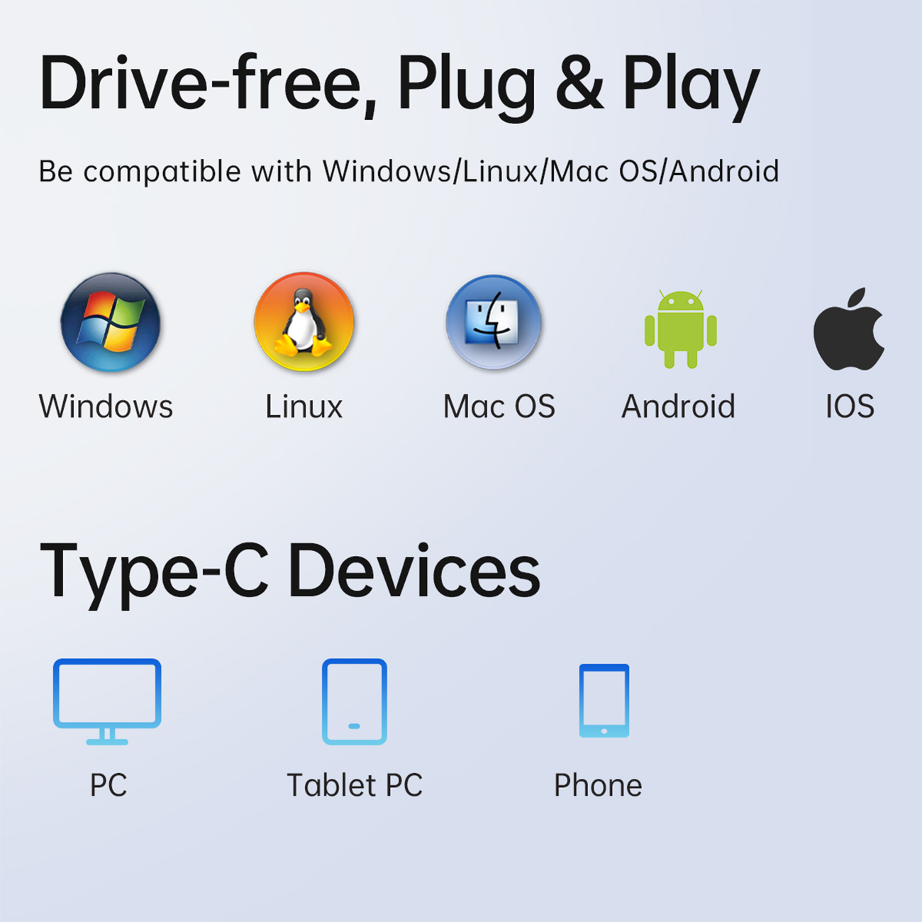 ORICO-PW11-5P-GY-EP Type-C 5-in-1 با سیستمعاملهای ویندوز، لینوکس، سیستم عامل مک، اندروید سازگار است و آن را به گزینهای جهانی مناسب برای همه حرفهایها و گیمرهایی که دائماً به پورتها و ظرفیت اضافی نیاز دارند تبدیل کرده است. هر پورت به طور مساوی با هم فاصله دارد تا در حین اتصال دستگاهها، کابلها را از هم دور نگه دارد.
