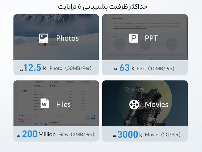 | حداکثر ظرفیت پشتیبانی | 6 ترابایت |