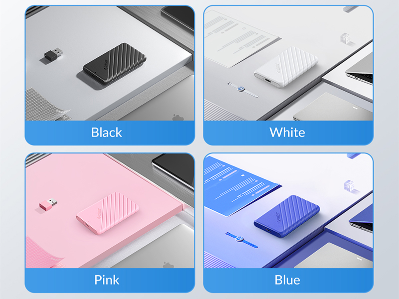 با خرید باکس هارد 2.5 اینچی اوریکو مدل 25PW1-U3 از سایت جانبی میتوانید یکی از 4 رنگ زیبای مشکی، سفید، صورتی، آبی را انتخاب و با لوازم دیگر خود ست نمایید. طراحی براق و روکش لطیف قاب هارد و SSD اوریکو حس خوشایندی را در شما ایجاد مینماید.