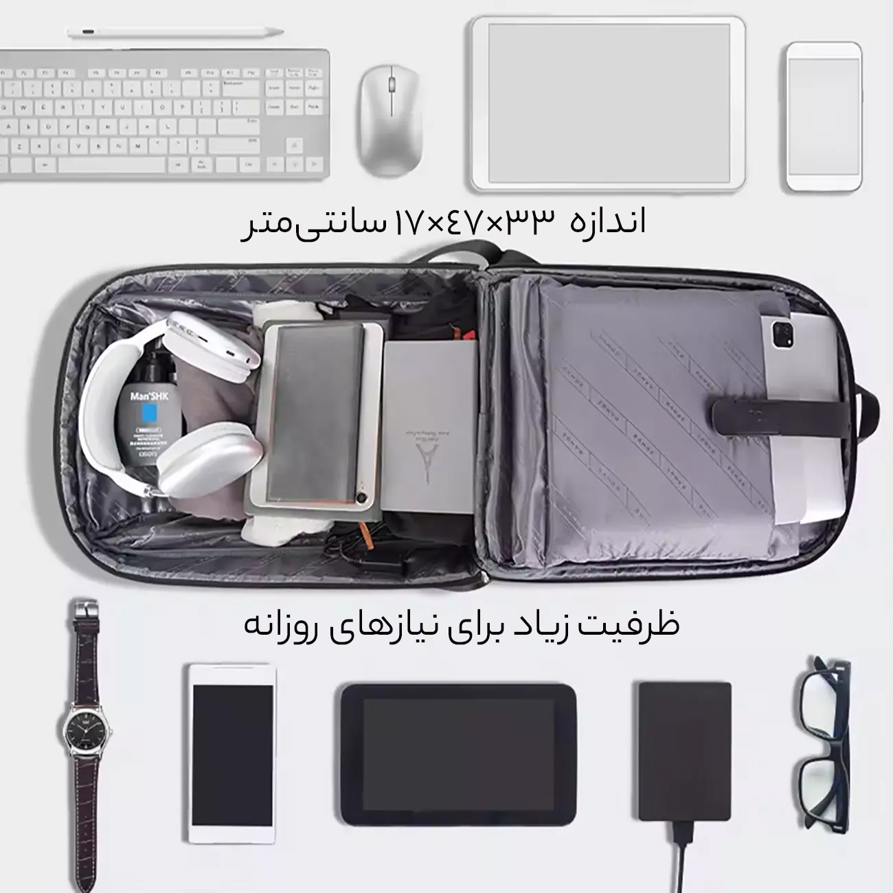 کوله پشتی لپ تاپ 15.6 اینچ ضد آب طرح چمدان دارای درگاه تایپسی و یواسبی بنج BG-7802