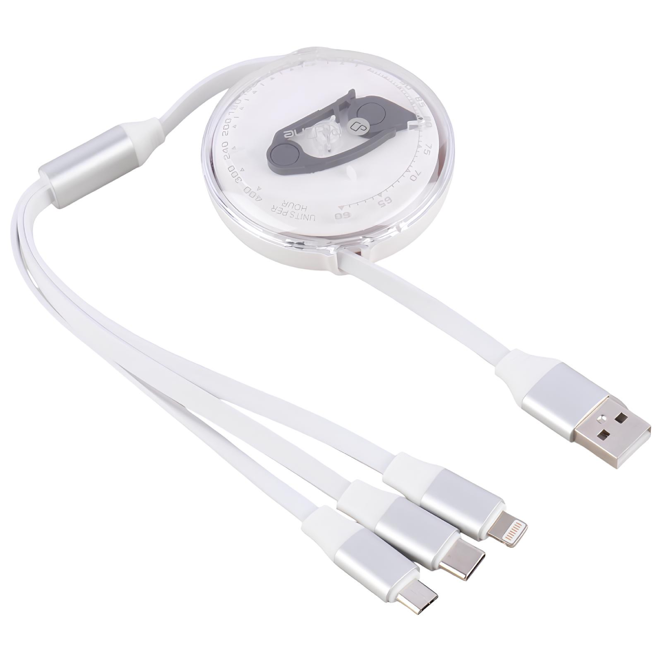کابل شارژ چندسر برند پرووان مدل PCC118R، ترکیبی از نوآوری و طراحی حرفهای است که نیازهای روزمره شما را به شکلی جذاب و کاربردی برآورده میکند. این کابل با ظاهری مدرن و منحصر به فرد، دارای یک پورت USB در یک سمت و سه پورت لایتنینگ، Type-C و MicroUSB در سمت دیگر است. مکانیزم فنری جمع شو آن که در یک محفظه دایرهای شفاف قرار دارد، به شما امکان میدهد طول کابل را تا حداکثر 110 سانتیمتر تنظیم کنید و تنها با یک حرکت ساده، کابل به حالت اولیه خود بازگردد.