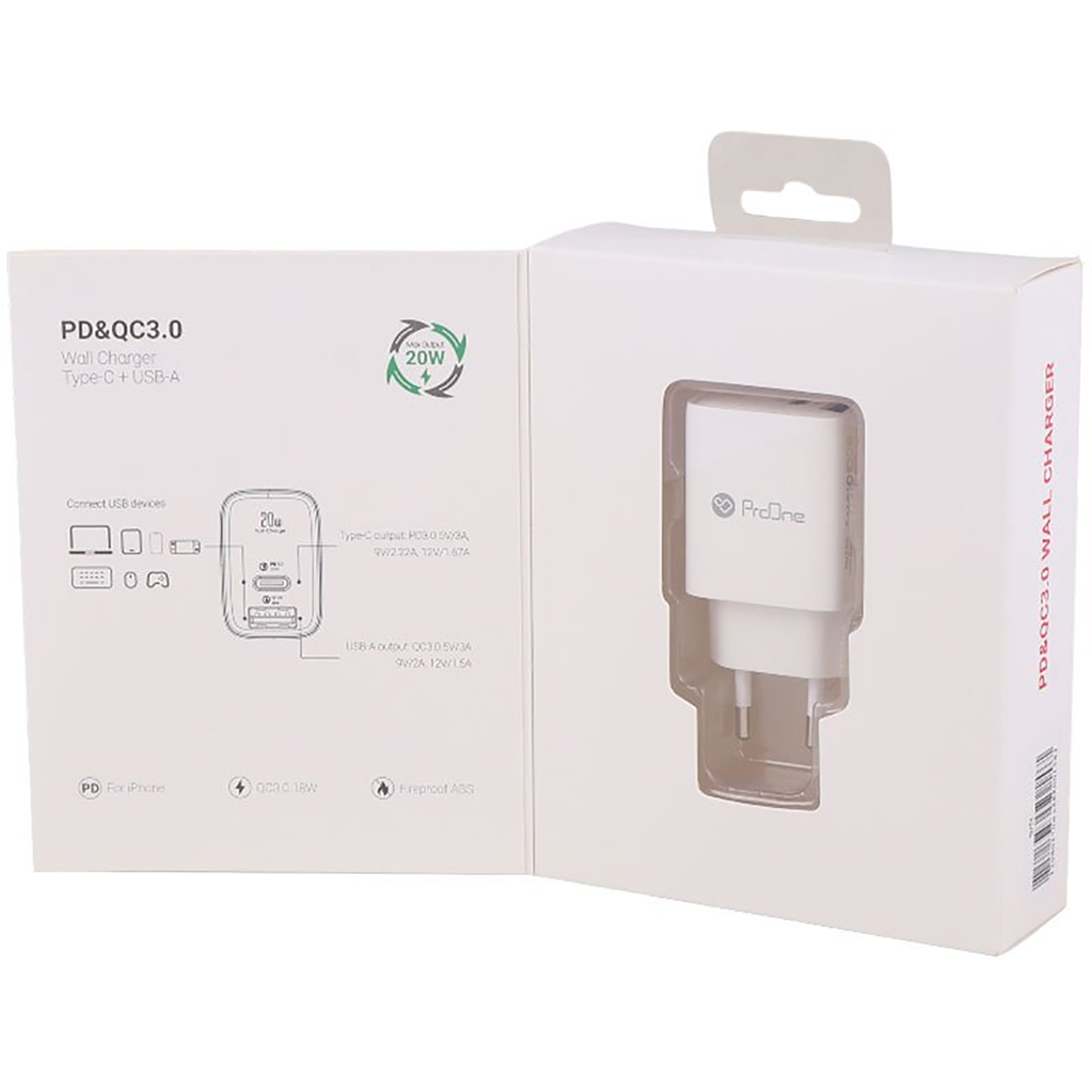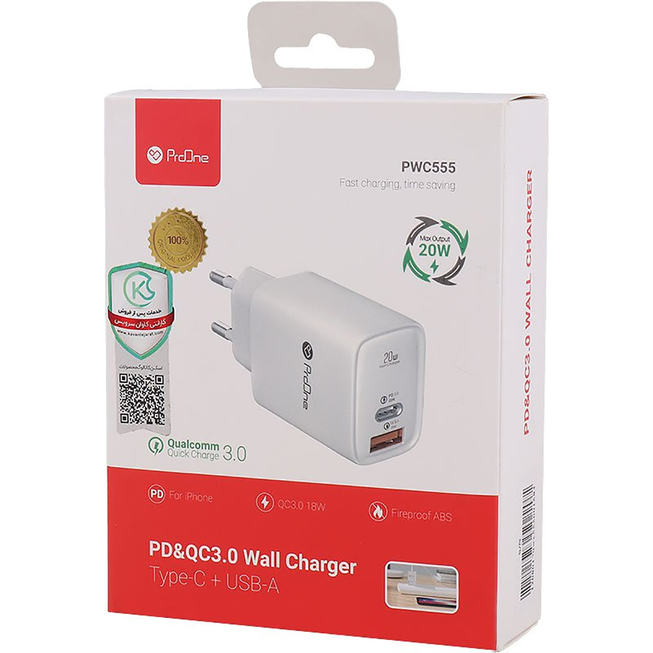 آداپتور فست شارژ تایپ سی و یو اس بی 20 وات پرووان PWC555