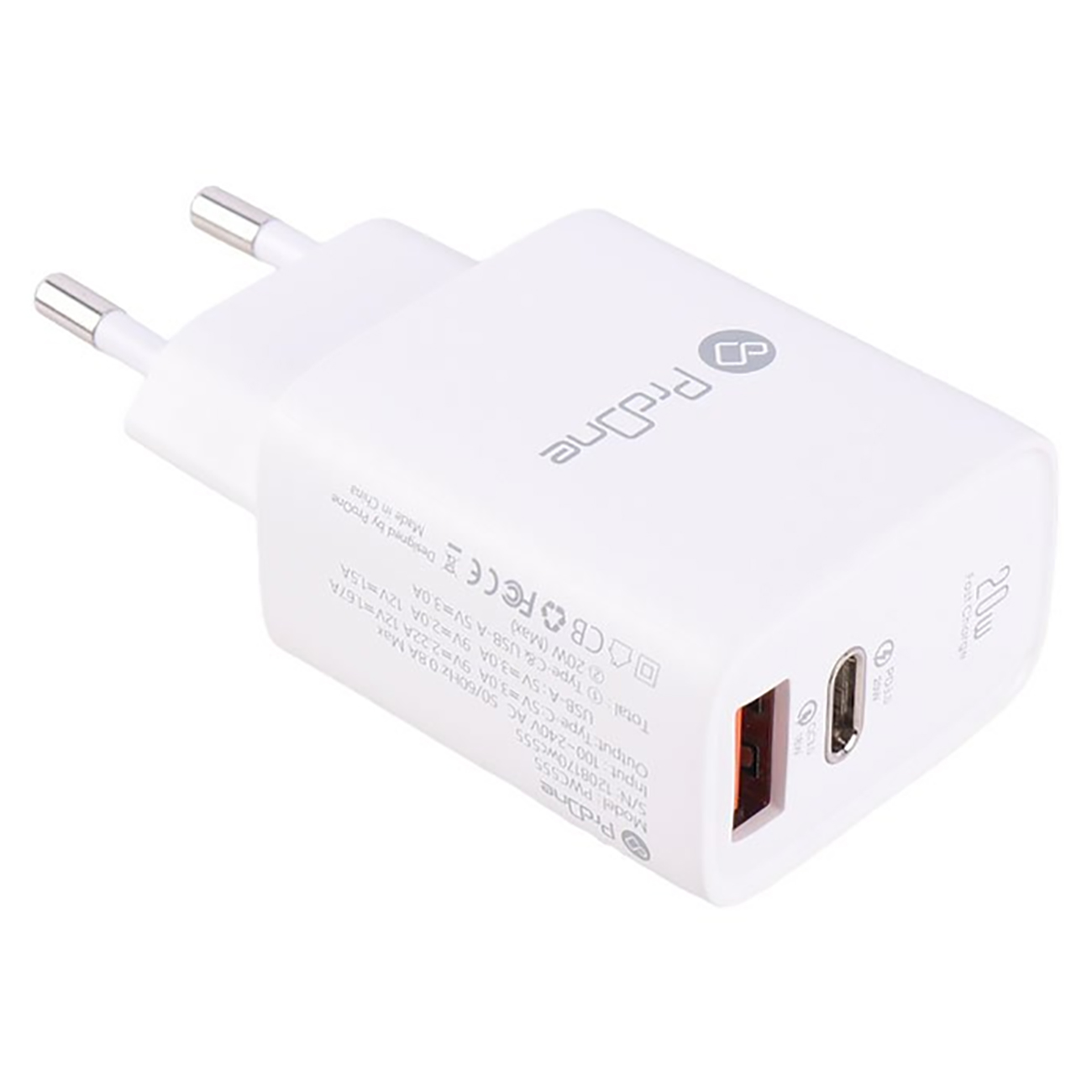 آداپتور پرووان PWC555 دارای دو عدد پورت خروجی USB و Type-C با فناوری PD است که با درگاه USB میتواند جریان برق را با ولتاژهای 5V/3A - 9V/2A - 12V/1.6A و همچنین با درگاه TYPE-C میتواند جریان برق را با ولتاژهای 5V/3A - 9V/2.22A- 12V/1.6A و در مجموع به عنوان شارژر دیواری سوپر فست خروجی 20W میتواند همزمان دو دستگاه شما را با سرعت بیشتری شارژ کند. البته باید دقت داشته باشید که برای استفاده از فناوری شارژ سریع، باید حتما گوشی هوشمند یا تبلت شما، توانایی پشتیبانی از تکنولوژی شارژ سریع را هم داشته باشد.