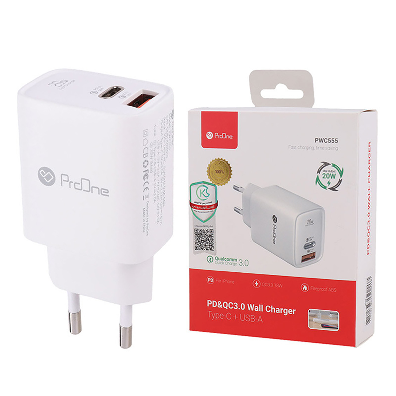 شارژر دیواری فست شارژ پرووان مدل PWC555، یکی از محصولات باکیفیت شرکت پرووان است که علاوهبر مجهز بودن به انواع استانداردهای جهانی مانند گواهی استاندارد CE و FC اروپا و همچنین گواهی استاندارد ROHS، با محیط زیست نیز سازگار بوده و دارای فناوری محافظت از سلامت باتری است.