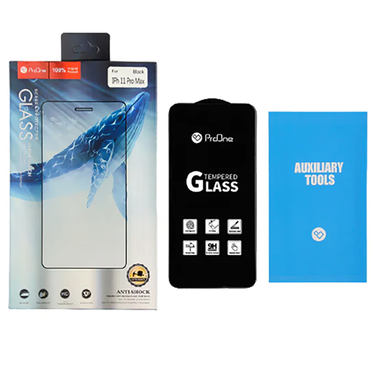 گلس گوشی آیفون 11 پرومکس ProOne Tempered iPhone 11 PRO Max Screen Protector از جنس شیشه حرارت دیده بوده و تمام صفحه را پوشش میدهد؛ با طراحی 3D و یکپارچه، پوشش کامل و محافظتی همه جانبه از نمایشگر گوشی شما را به عمل میآورد.