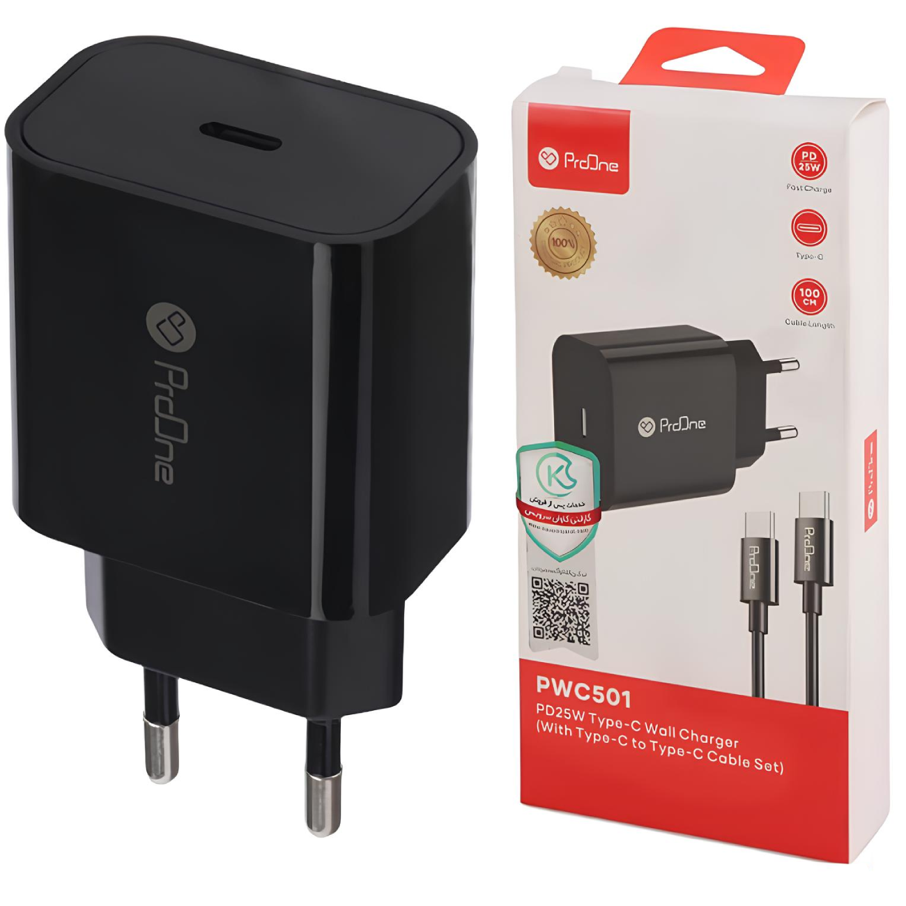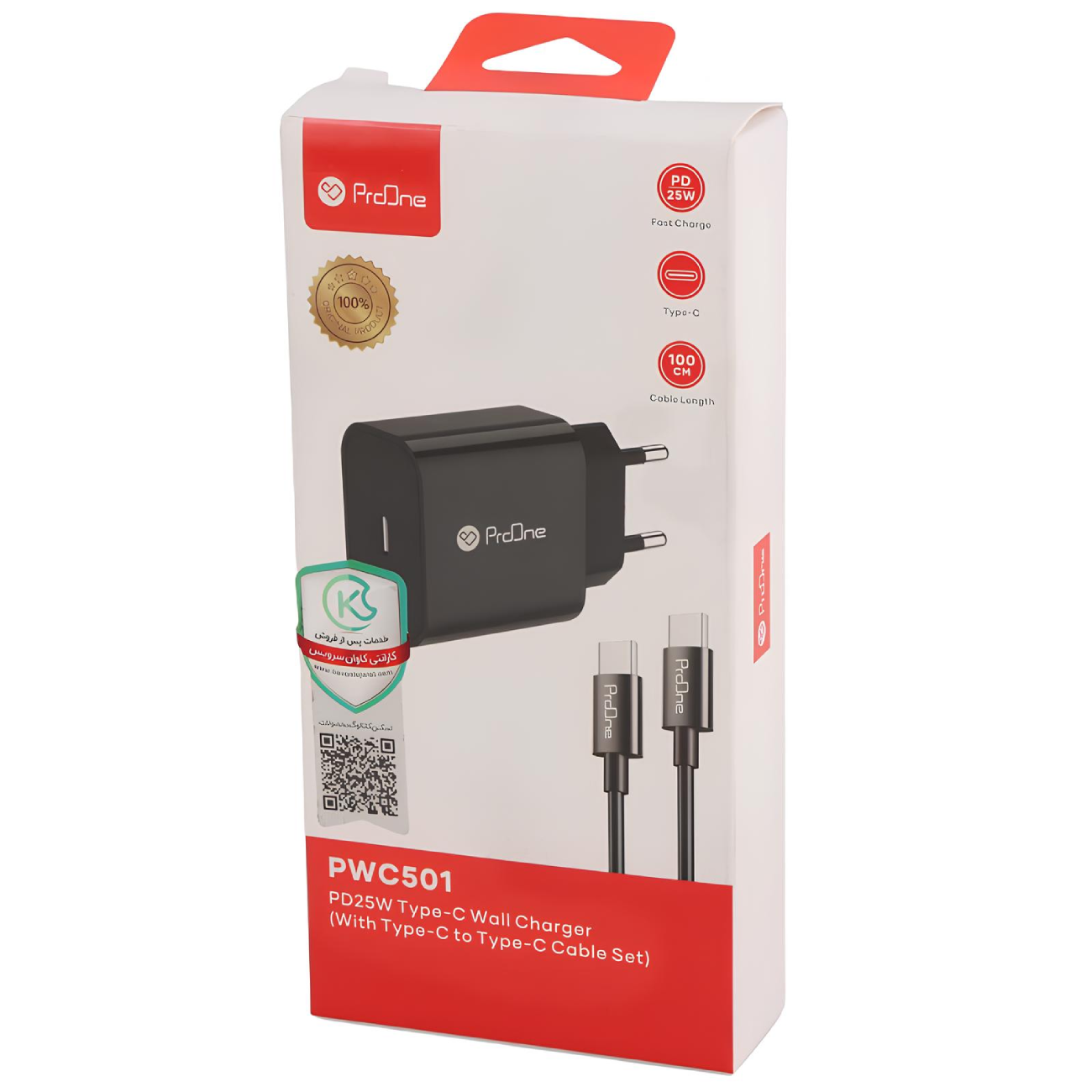 شارژر دیواری فست شارژ تایپ سی 25 وات همراه با کابل دو سر تایپ سی پرووان PWC501