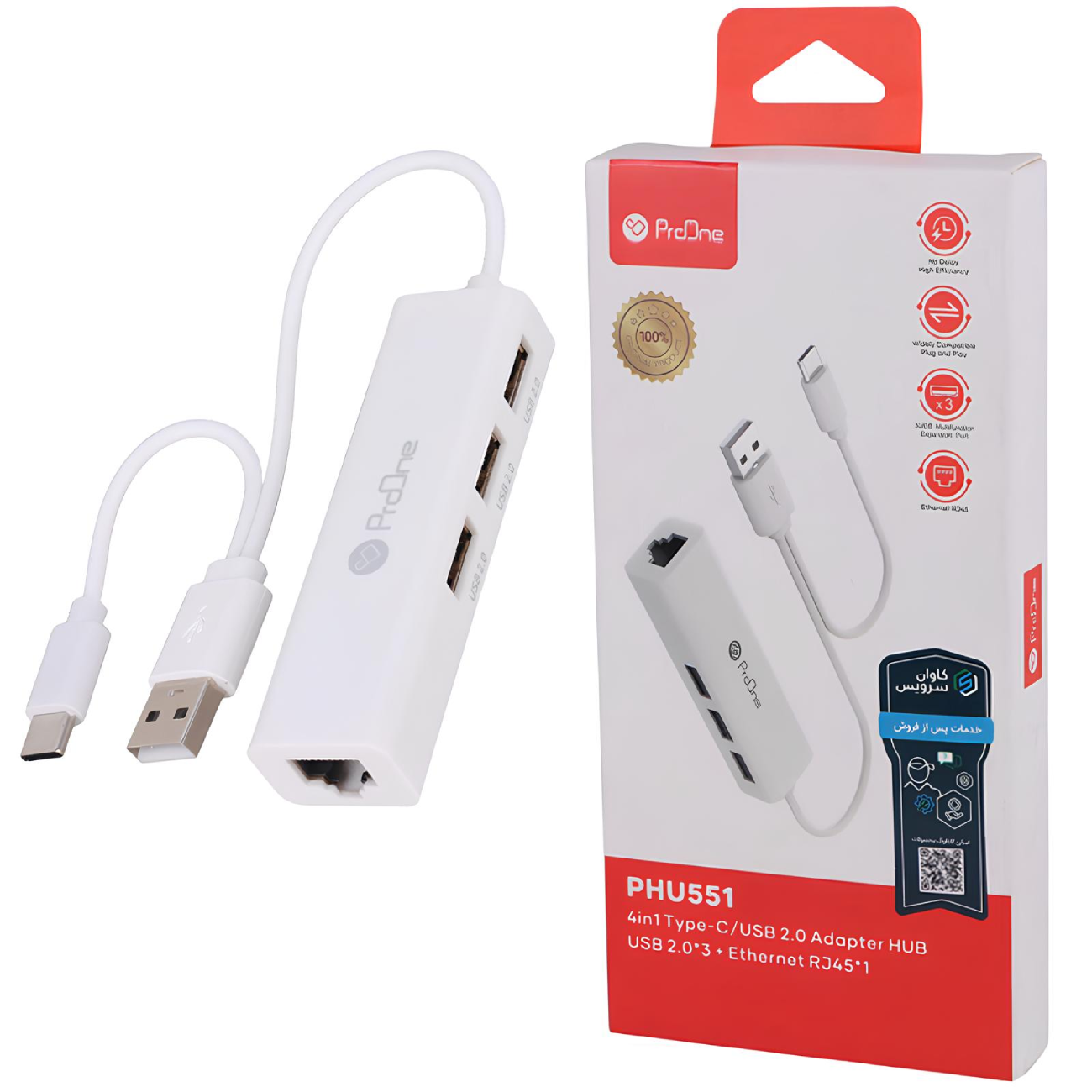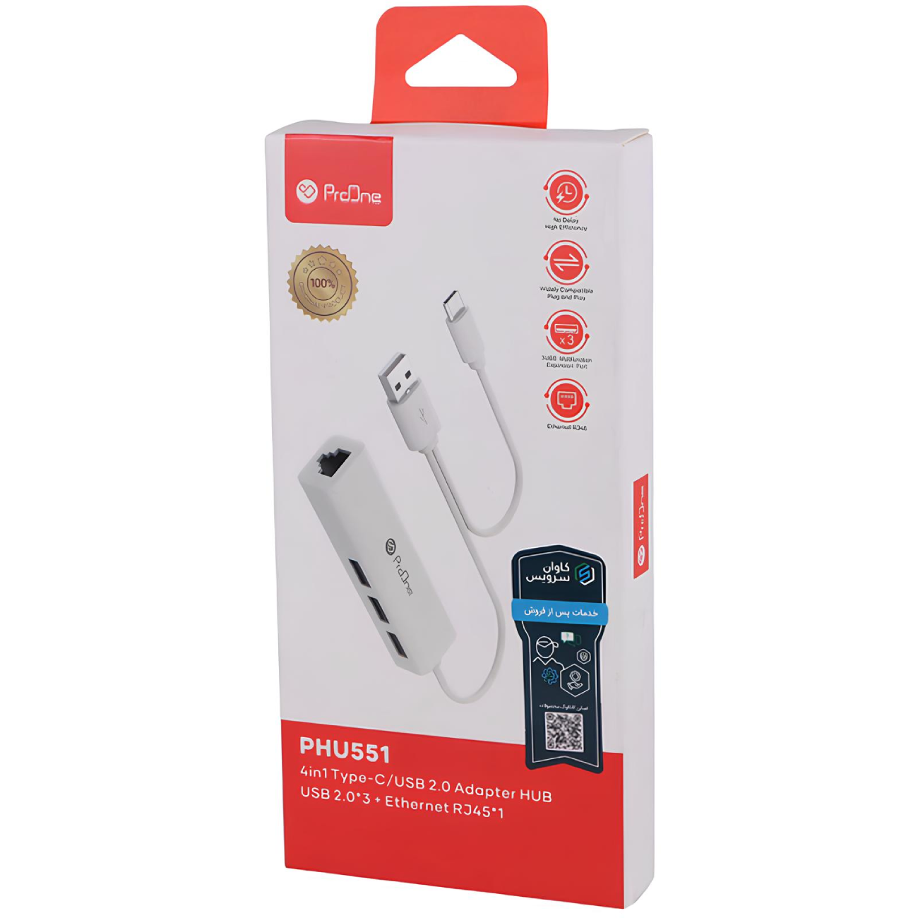 مبدل چهار پورت Type-C/USB2.0 پرووان مدل PHU551