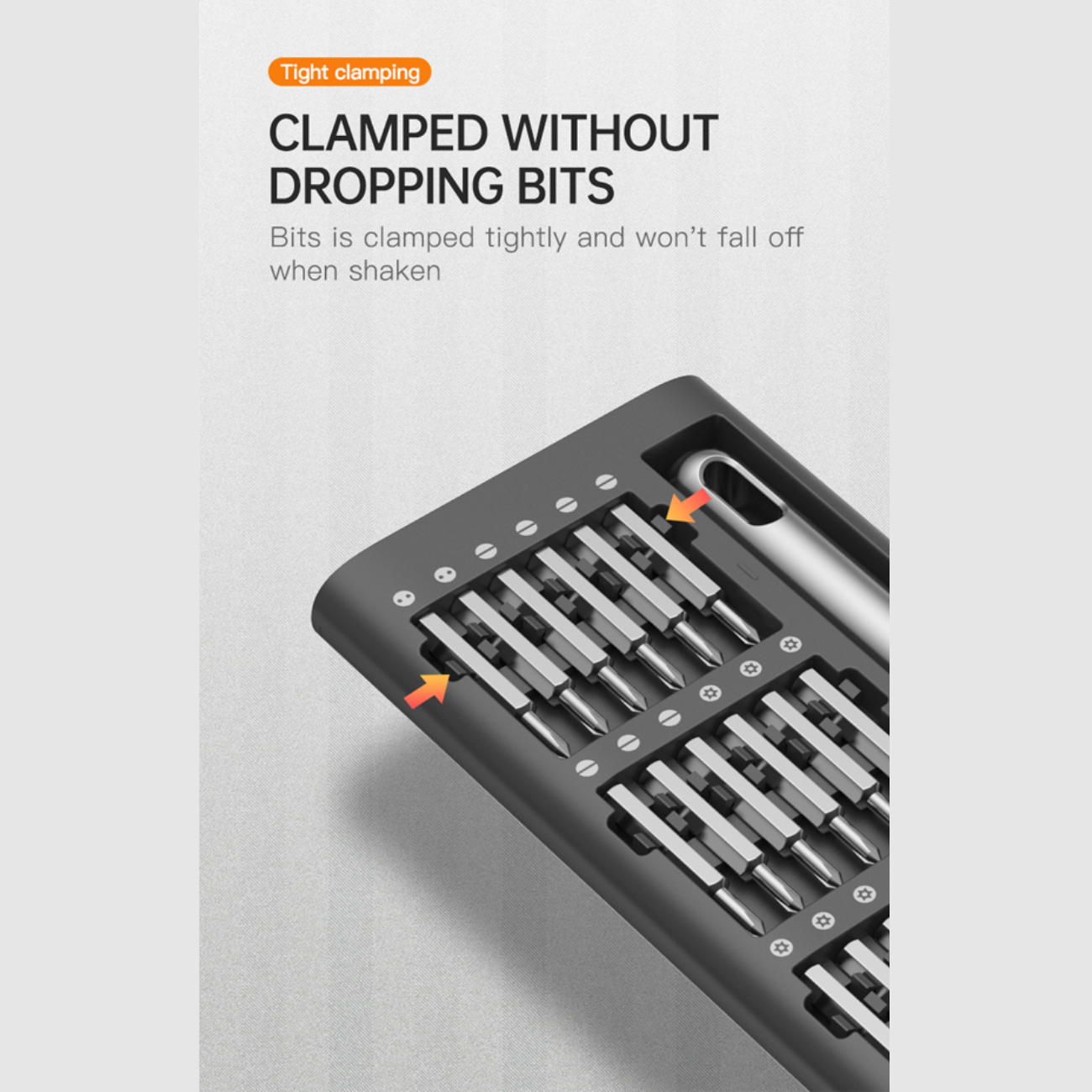به لطف سر مغناطیسی قوی، کار با این کیت ابزار آسان میشود و خطر گم شدن پیچها و قطعات کوچک به حداقل میرسد. این ویژگی به افزایش دقت و کارایی تعمیرات کمک بسیاری میکند.