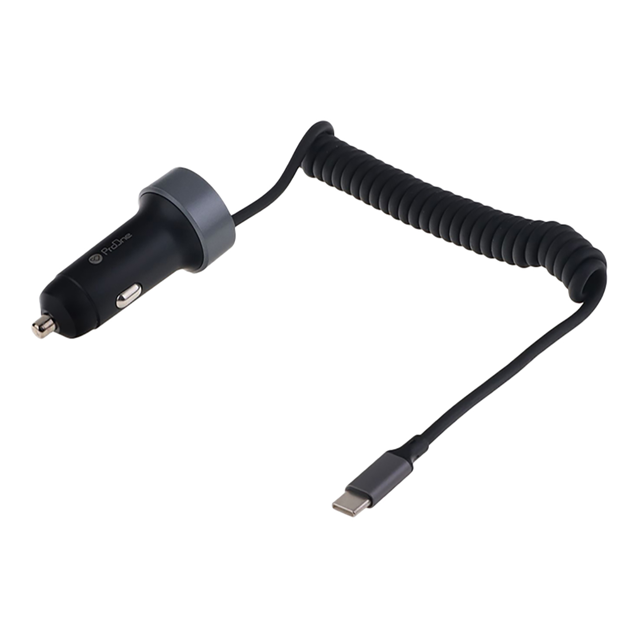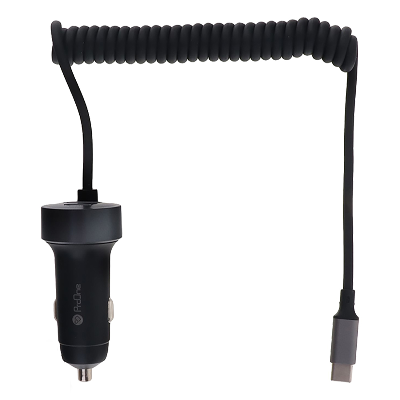شارژر موبایل داخل ماشین دو پورت USB و Type-C پرووان با کابل فنری تایپ سی PCG27