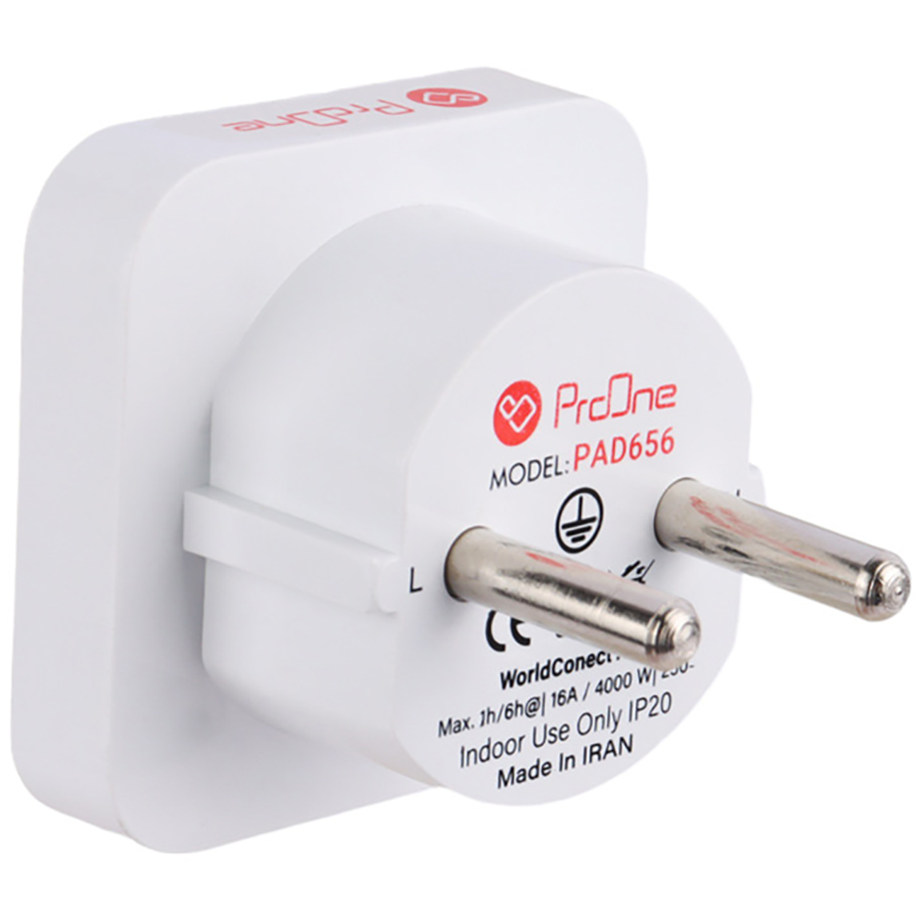پرووان تبدیل برق 3 به 2 PROONE PAD60 POWER PLUG ADAPTOR را از پلاستیک مقاوم ساخته، که در برابر حرارت و ضربه مقاومت بالایی دارد.