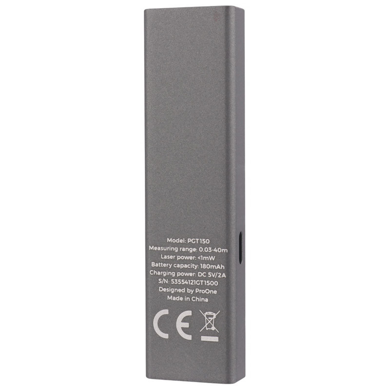 یکی دیگر از ویژگیهای کاربردی متر لیزری PGT150، قابلیت شارژ مجدد آن از طریق پورت میکرو یو اس بی است. این ویژگی به کاربران این امکان را میدهد تا به راحتی با استفاده از کابل همراه، باتری دستگاه را شارژ کرده و از آن در مدت زمان طولانی استفاده کنند. باتری داخلی با ظرفیت 180 میلیآمپر ساعت، انرژی کافی برای استفادههای مداوم را فراهم میکند.