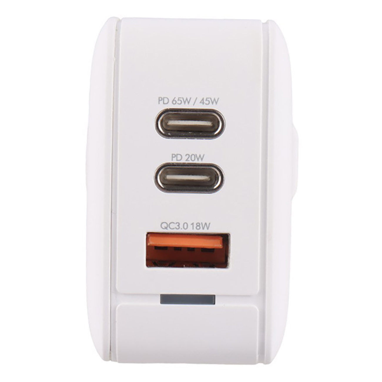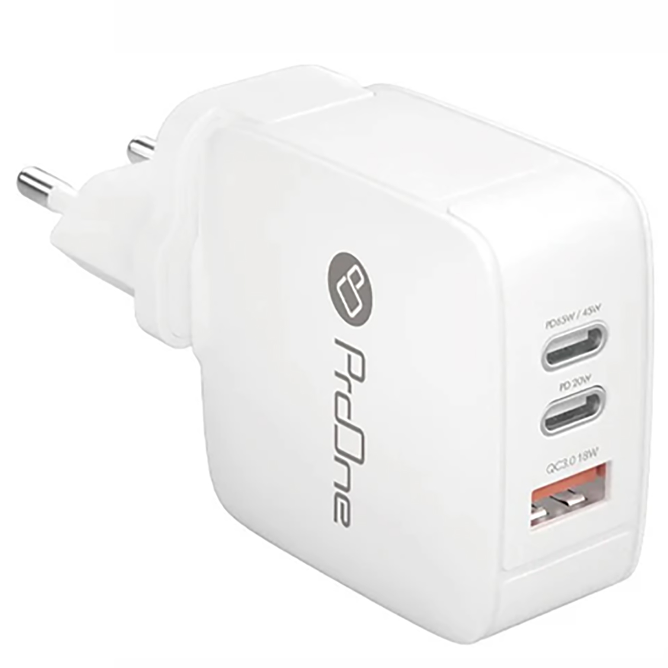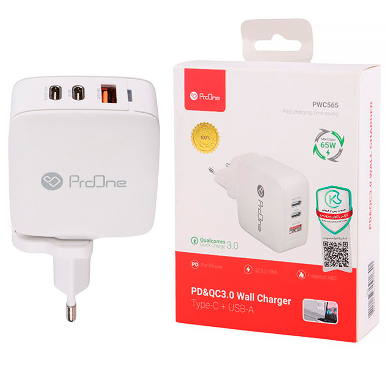 شارژر سه پورت پروان با 2 درگاه خروجی Type-C و یک درگاه USB-A، میتوانید تلفن، نوتبوک و هندزفری خود را بهصورت همزمان با یک شارژر شارژ کنید. این شارژر دارای حداکثر توان خروجی تا 65 وات است.