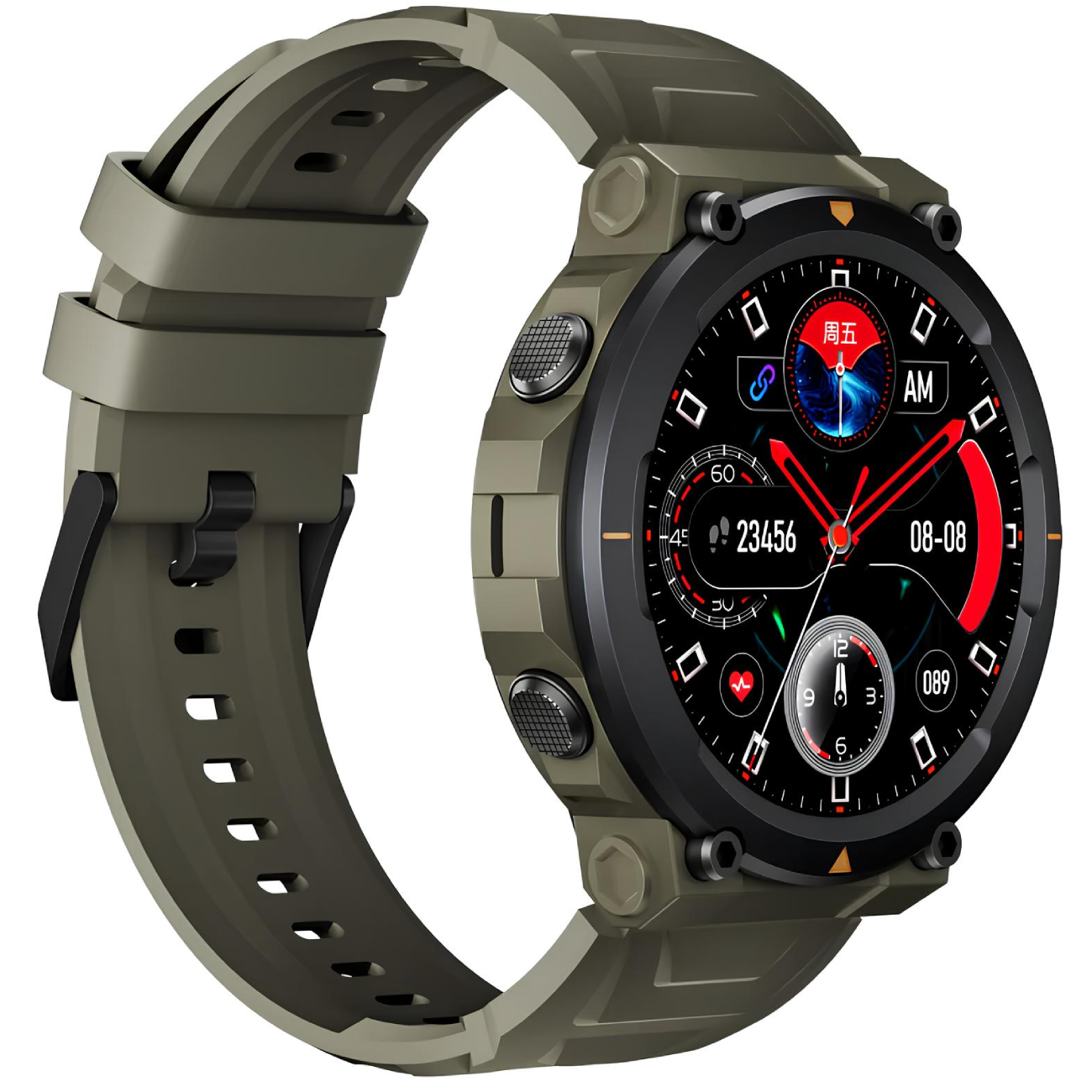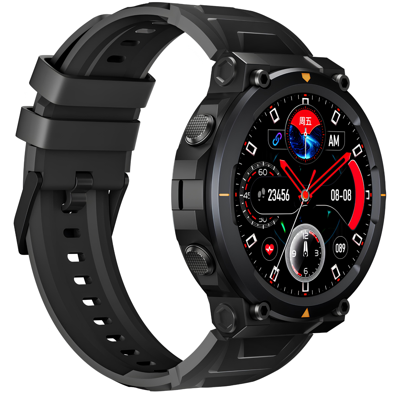 صفحه نمایش رنگی و گرد 1.4 اینچی از نوع Full HD AMOLED با پنل IPS یکی از ویژگیهای بارز این ساعت محسوب میشود. این نمایشگر با رزولوشن 466*466 پیکسل، تصاویری بسیار روشن و واضح را به نمایش میگذارد و حاشیههای باریک آن ظاهری شیک و مدرن به ساعت میبخشد. صفحه نمایش لمسی با حساسیت بالا، قابلیت تعامل سریع و آسان با تمام امکانات ساعت را برای کاربران فراهم میآورد.