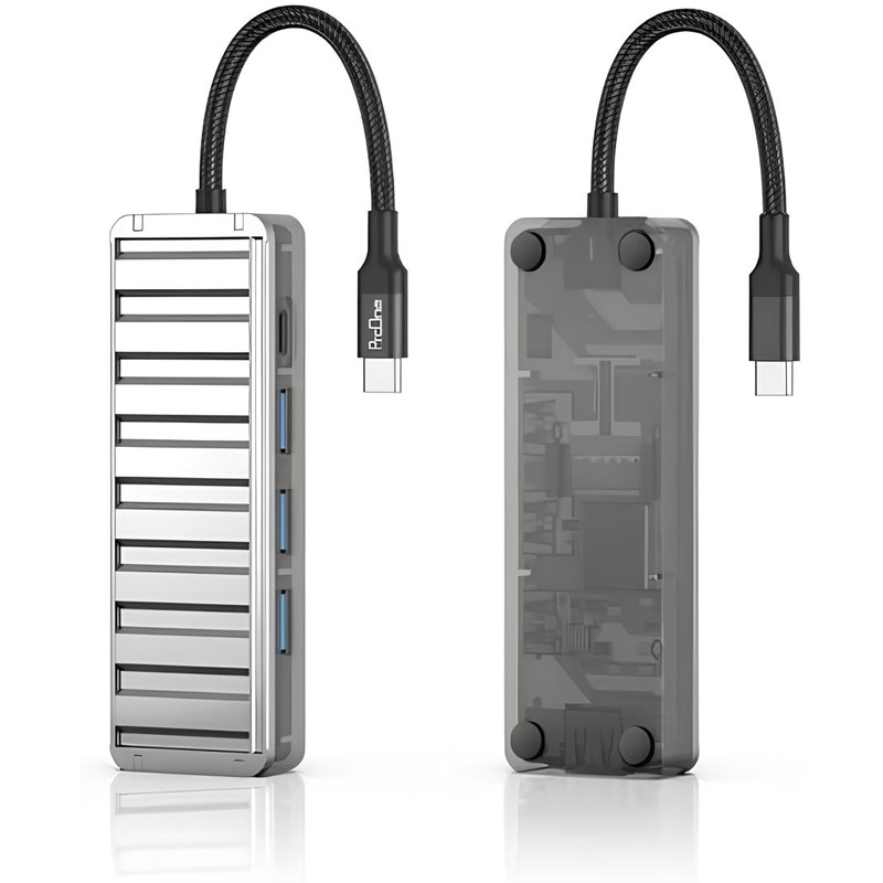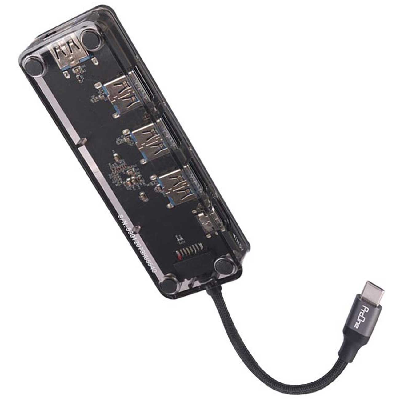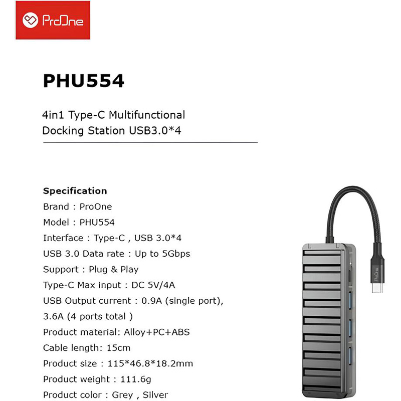 هاب ها به عنوان بهترین گزینه ها در زمان کمبود درگاه های ارتباطی و برای افزایش توان اتصال لوازم جانبی به کامپیوتر و لپ تاب ها روانه بازار شدند. این دستگاه در انواع مختلفی با درگاه های متفاوت تولید و روانه بازار شده؛ اما چیزی که بین همه مشترک است توانایی افزایش دسترسی به پورت محدود ورودی از طریق افزایش تعداد آن هاست. هاب ProOne PHU554 قادر است یک درگاه USB-C را به 3 درگاه USB-A نسخه 3.0 به همراه یک پورت USB Type-C ارتقاء دهد.