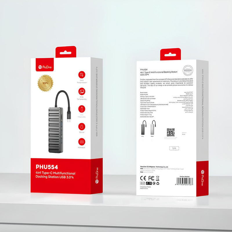 همان طور که پیشتر اشاره شد هاب مک بوک برند ProOne دارای 3 پورت از نوع USB 3.0 که سرعت انتقالی تا 5 گیگابایت بر ثانیه برای انتفال داده ها به همراه یک پورت USB Type C را دارد. همچنین فناوری Plug & Play این امکان را به شما می دهد تا بدون استفاده از هیچ نرم افزار راه اندازی، گجت را بلا فاصله بعد از اتصال مورد استفاده قرار دهید. کانکتور Type-C این امکان را فراهم می کند تا PHU554 برای استفاده در گوشی تلفن همراه، لپ تاپ و مک بوک گزینه مناسبی باشد.