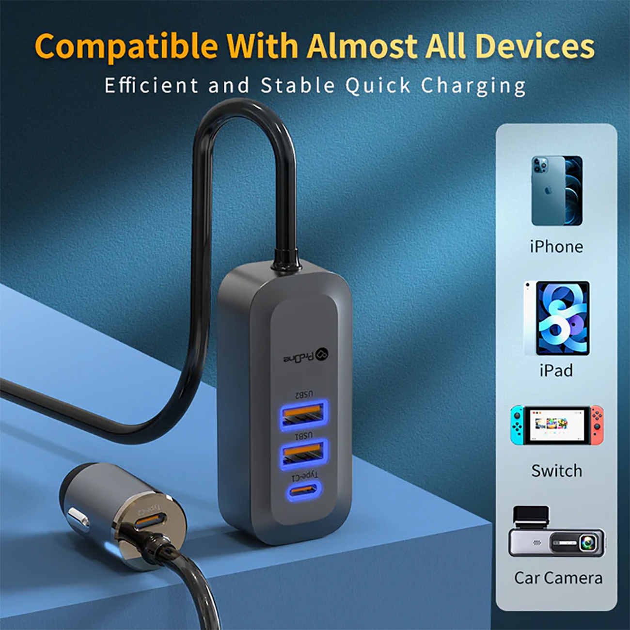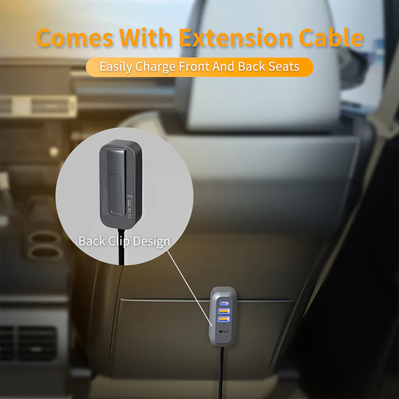 پرووان برای شارژر فندکی فست شارژ 100 وات PCG23 یک کابل 150 سانتیمتری طراحی کرده و این اجازه را به شما میدهد تا دستگاههای هوشمند خود را حتی در صندلی عقب به راحتی شارژ کنید. همچنین با قرار دادن یک گیره در پشت شارژر آن را به راحتی به صندلی ماشین متصل کنید تا مزاحمتی برای شما نداشته باشد.
