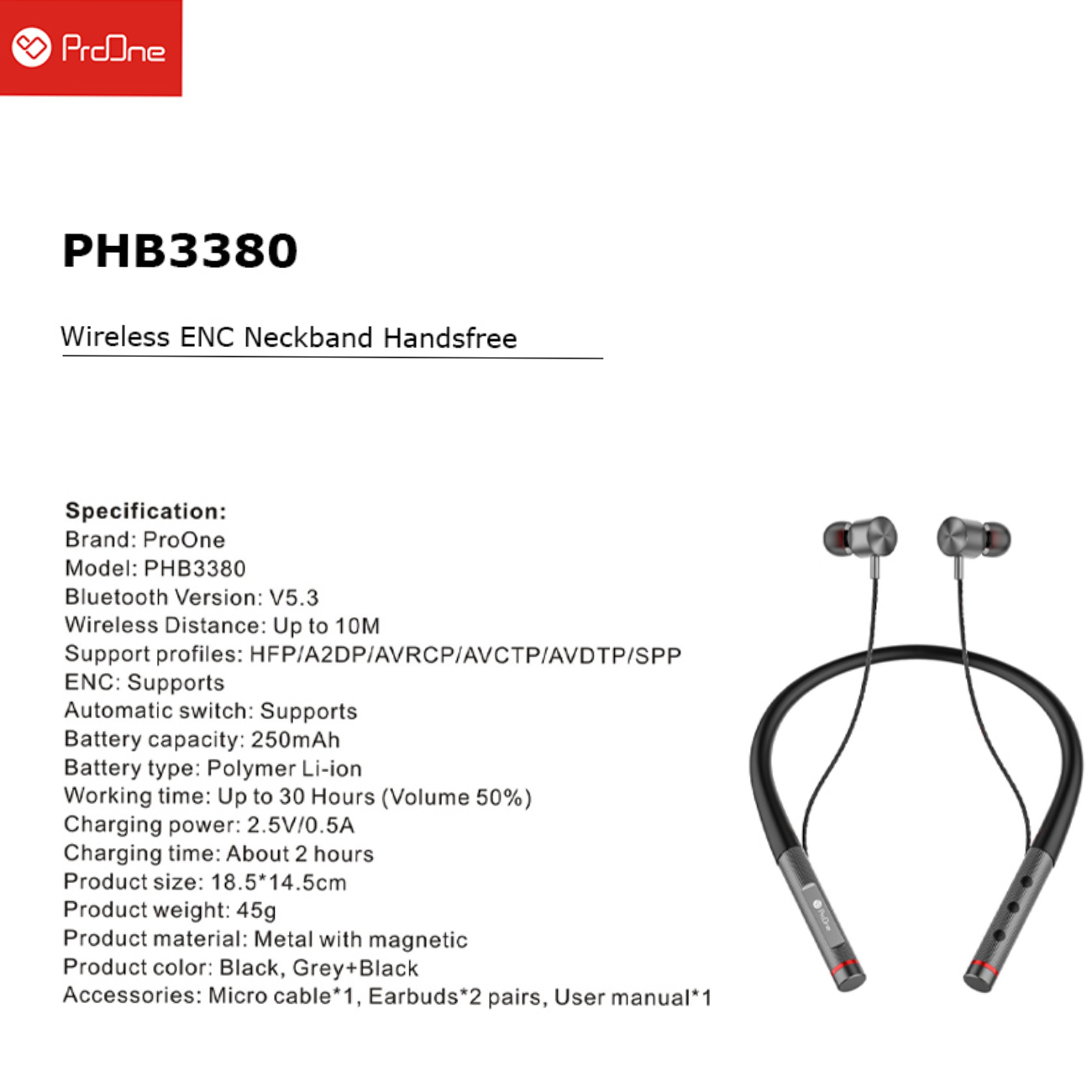 گوشیهای هندزفری دور گردنی ProOne PHB3380 با قابلیت مگنتی خود، یک ویژگی بینظیر را ارائه میدهند. هنگامی که گوشیها در گوش شما قرار ندارند، اما دستگاه دور گردن شما است، با استفاده از قدرت جذب مغناطیسی، از سقوط هندزفری از گردن شما جلوگیری میکنند. این ویژگی مفید، امنیت بیشتری در حین استفاده از هندزفری را فراهم میکند.