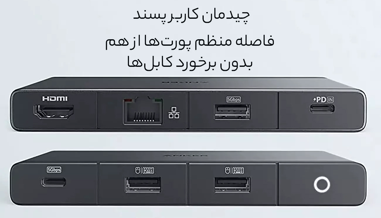 | نوع درگاهها | 2 پورت داده USB 3.0، 2 پورت USB-A، 1 درگاه 4K HDMI، 1 درگاه PD-IN 100 وات، 1 پورت اترنت، اسلات کارت SD/MicroSD |