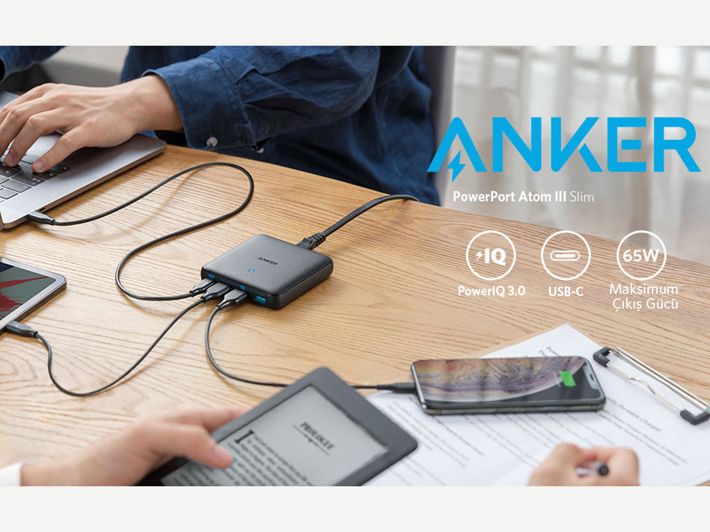 پاورهاب یو اس بی و تایپ سی 4 پورت 65 وات انکر Anker PowerPort Atom III Slim A2045