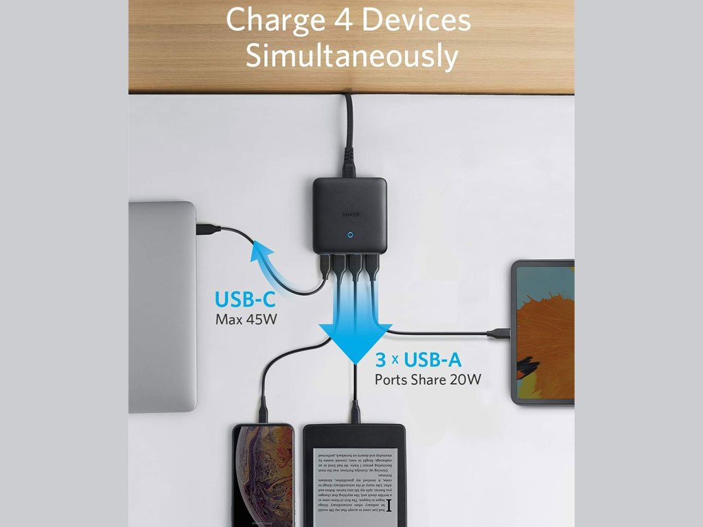 شارژر رومیزی A2045 انکر دارای سه درگاه USB با تکنولوژی شارژ سریع پاور آی کیو (PowerIQ) است. PowerIQ یک فناوری اختصاصی برند انکر است. USBها از توان 20 وات و شدت جریان 5V/4A/2.4A برخوردارند.