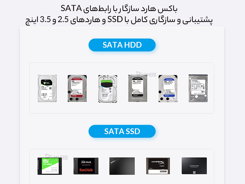 | سازگار با | SSD و هاردهای ۲.۵ اینچی با ضخامت 7mm-9.5mm |