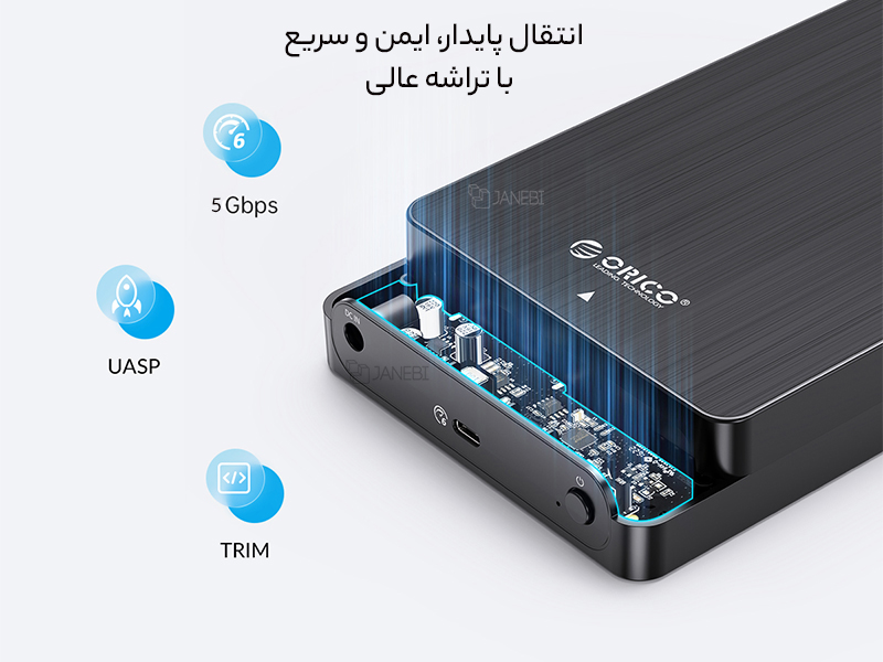 به علاوه باکس هارد 2.5 اینچ اوریکو مجهز به آداپتور برق ۱۲V2A بوده که با این توان برق بالا و قوی، میتواند تا ظرفیت حداکثر 4 ترابایت پشتیبانی نماید و یک انتقال پایدار را برای کاربران به ارمغان آورد.