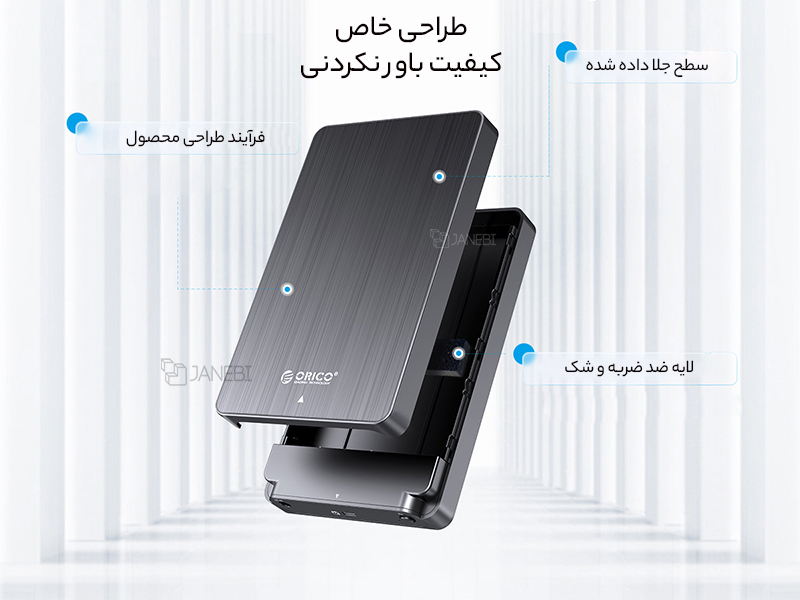 محفظه هارد ۲.۵ اینچ USB3.0 اوریکو مدل HM25U3 با سطح جلای داده شده و ظاهر زیبا و شیک با لایه ضد ضربه و شک طراحی شده و ثبات و پایداری بهتری را بدون افت کیفیت ایجاد مینماید.