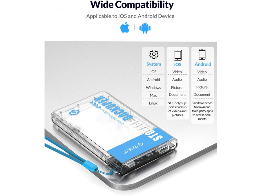 حافظه موبایل گنجایش تعداد زیاد فایل و اطلاعات را ندارد و به همین دلیل افرادی که استفاده زیادی از گوشی دارند و مدام در حال ذخیره اطلاعات مانند فیلم، عکس و انواع فایل هستند بعد از مدت کوتاهی با مشکل پر شدن حافظه آن مواجه میشوند. کمپانی اوریکو هم برای چنین افرادی محصولی با عنوان پشتیبان گیر 2.5 اینچ ORICO BA2110 Backuper را طراحی کرده تا کاربرانش در هر جایی که باشند با خیالی راحت به عکاسی، فیلم برداری یا ذخیره دیتاهای دیگر بپردازند و نگران پر شدن حافظه موبایل خود نباشند. البته این محصول قابل استفاده برای کامپیوتر هم بوده و میتوانید از اطلاعات موجود در این دستگاهها هم پشتیبان بگیرید. این محصول مبدل هارد های 2.5 اینچی ست که با قرار دادن هارد درون این مدل میتوانید از حافظه هارد خود برای پشتیبان گیری استفاده بفرمایید