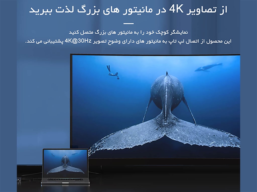 این محصول از اتصال لپ تاپ به مانیتورهای دارای وضوح تصویر 4K@30Hz پشتیبانی میکند.