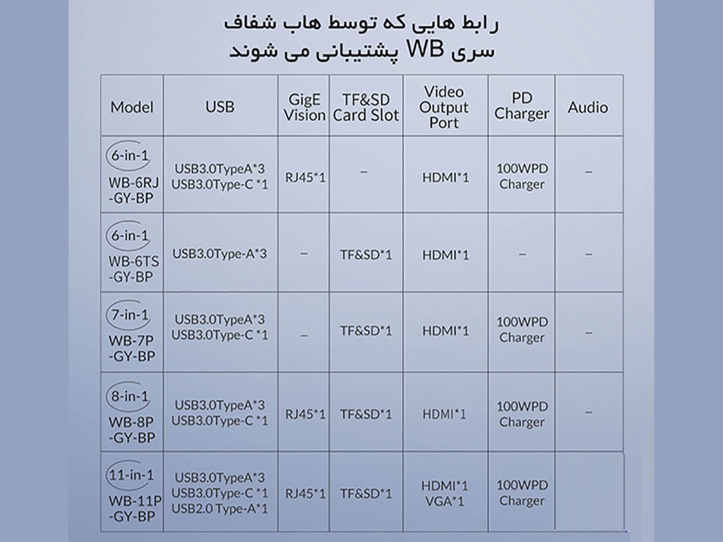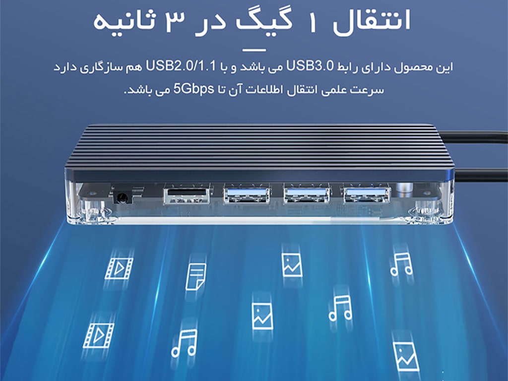 این هاب Type-C دارای رابط USB3.0 میباشد و با USB2.0/1.1 هم سازگاری دارد