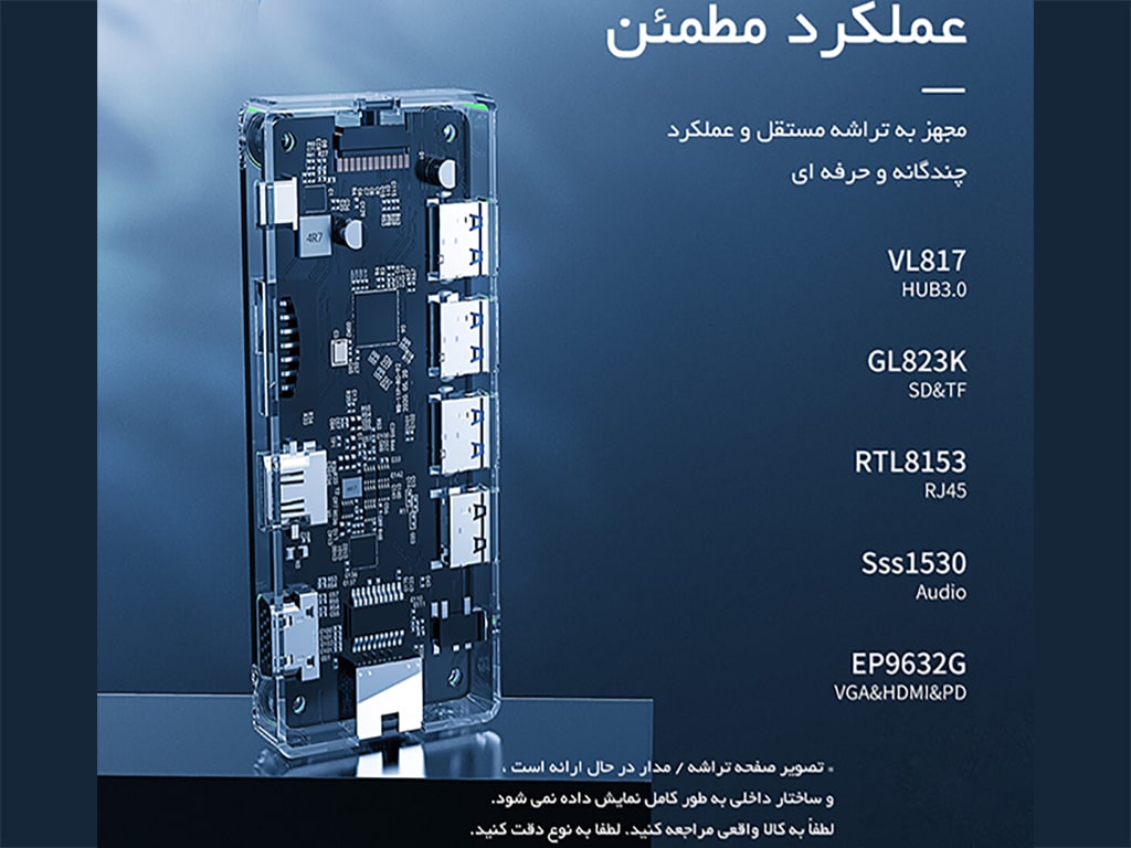 | چیپست ها | HUB3.0 chip:VL817,HDMI&PD chip:LT8711H,RJ45 chip:RTL8153 |