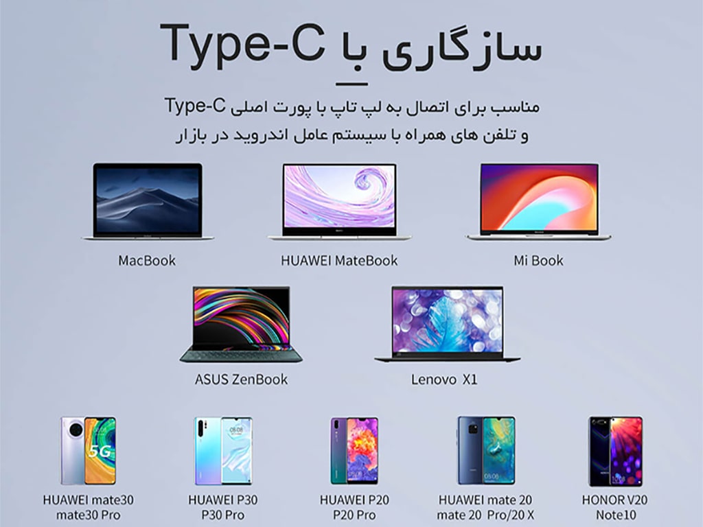 مناسب برای اتصال به لپ تاپ با پورت اصلی Type-C