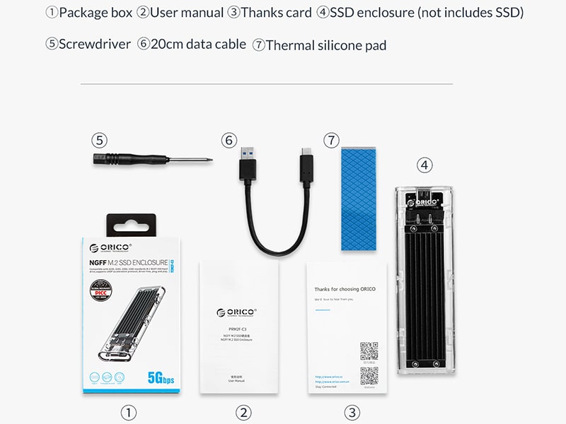 باکس اس اس دی اوریکو فقط با رابط کلید M.2B سازگار است. همچنین از سیستم عامل های Windows / Mac / Linux پشتیبانی می کنه.ظرفیت پشتیبانی شده باکس اس اس دی تاندربولت اوریکو 2 ترابایت می باشد ، قابلیت اتصال به کامپیوتر ذخیره و انتقال داده ها ، اتصال به تلویزیون و تماشای فیلم به صورت HD ، اتصال به تلفن همراه با عملکرد OTG و دسترسی به فایل ها به راحتی .