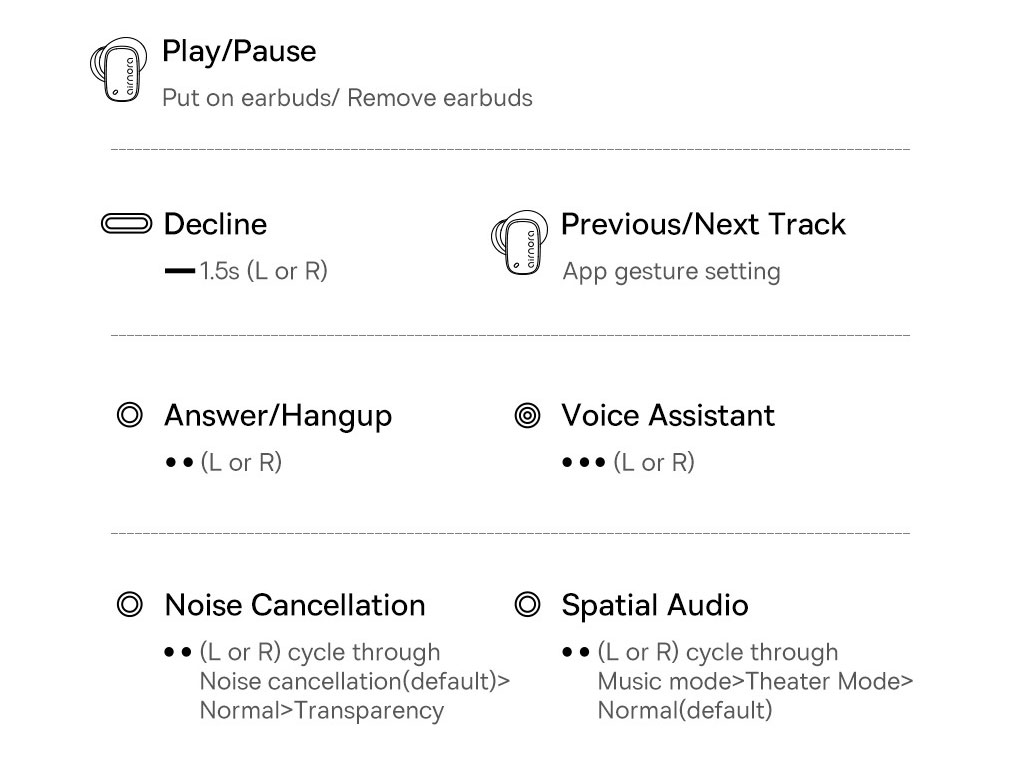 | سایر قابلیت ها | صدای فضایی (حالت عادی/موسیقی/فیلم)، 3 سناریو کاهش نویز (حالت کاهش نویز/عادی/شفافیت)، قابلیت تنظیم سازگاری EQ (12 جلوه صوتی)، قابلیت سفارشی سازی دکمه (کنترل خود را تنظیم کنید)، قابلیت نقشههای موقعیت مکانی (جستجوی یک گوشی از راه دور)، حالت تاخیر کم برای بازی (روشن/خاموش) |