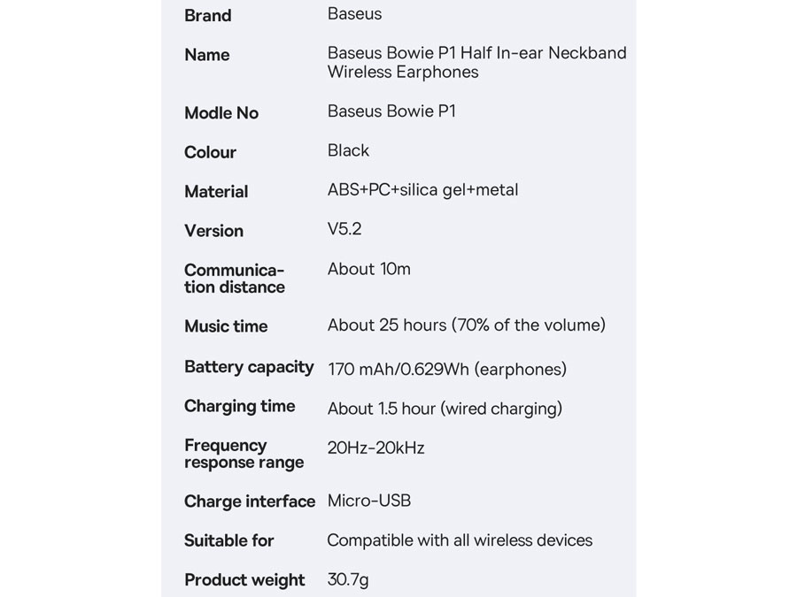 Baseus Bowie P1 Half In-ear Neckband Wireless Earphones NGPB000001