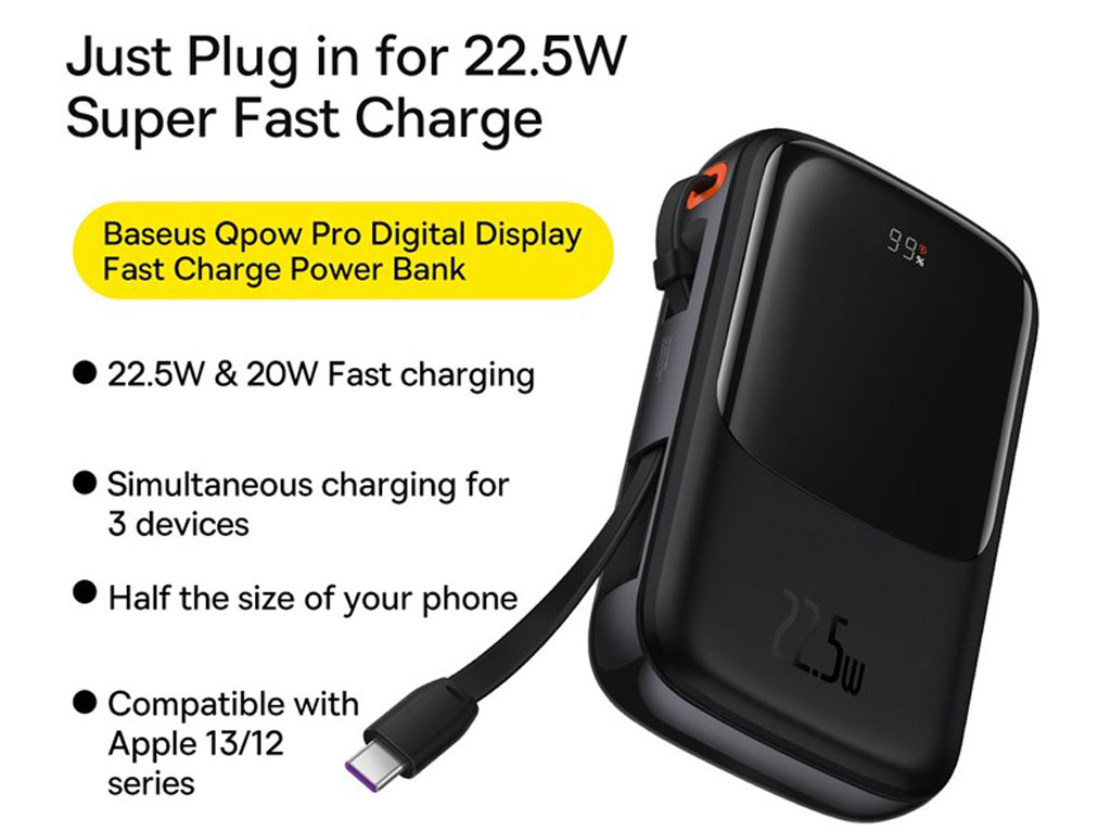 کمپانی بیسوس با تولید پاوربانک پاوربانک شارژ سریع 10000 بیسوس Baseus Qpow Pro Fast Charge Power Bank 22.5W PPQD020101 باز هم بازار را به دست گرفته است.