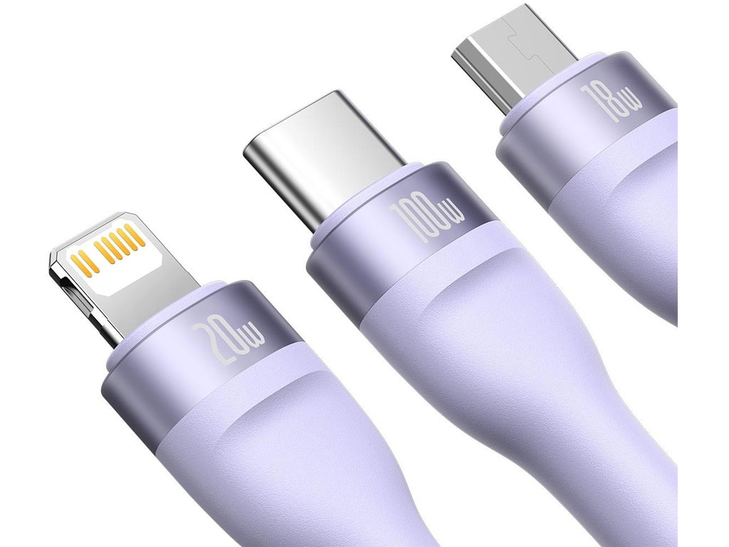 کابل فوق شارژ سریع سه سر تایپسی به لایتنینگ، میکرو و تایپسی 1.5 متری بیسوس Baseus Flash Series Fast Charging Cable 100W CASS030201