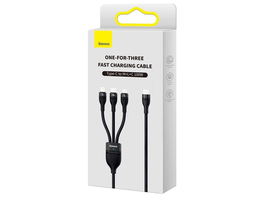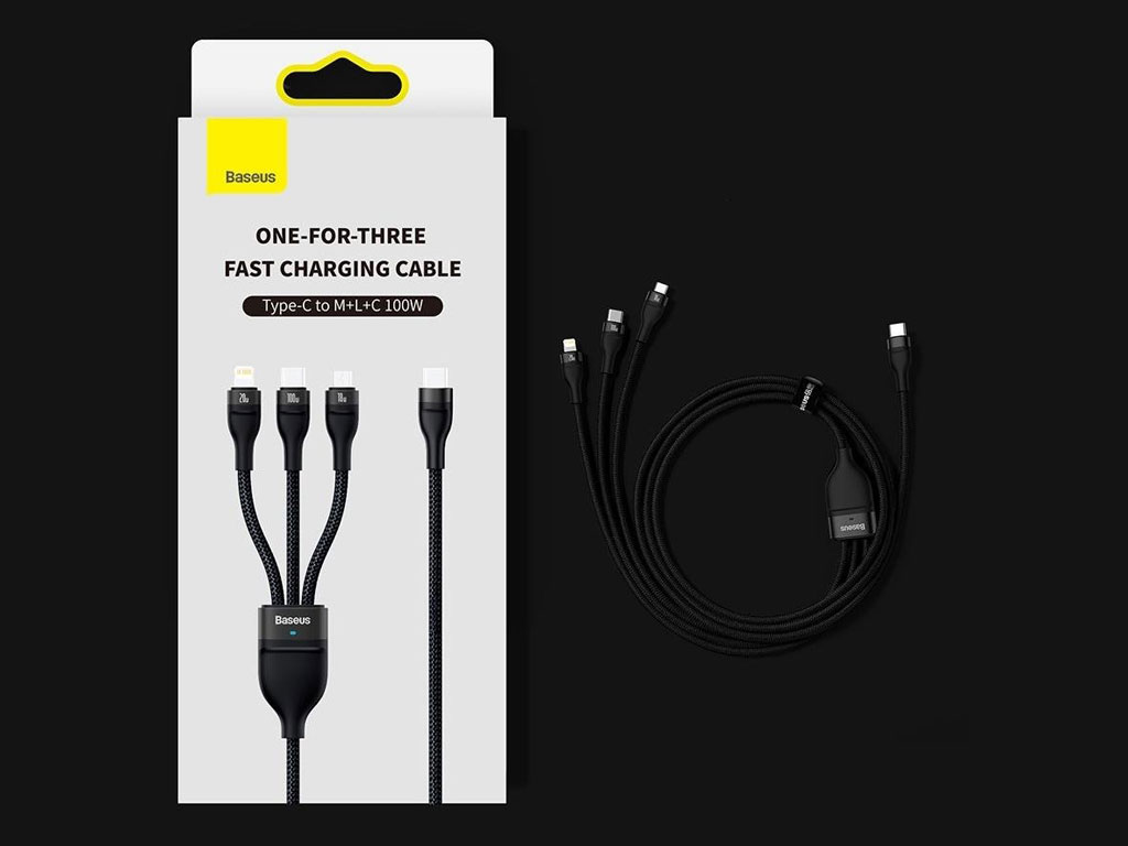 Baseus Flash Series One-for-three Fast Charging Cable Type-C to M+L+C 100W 1.5m CASS030201 CASS030203 CASS030205