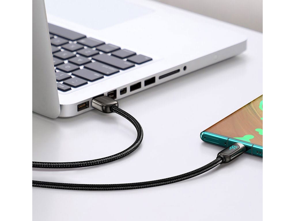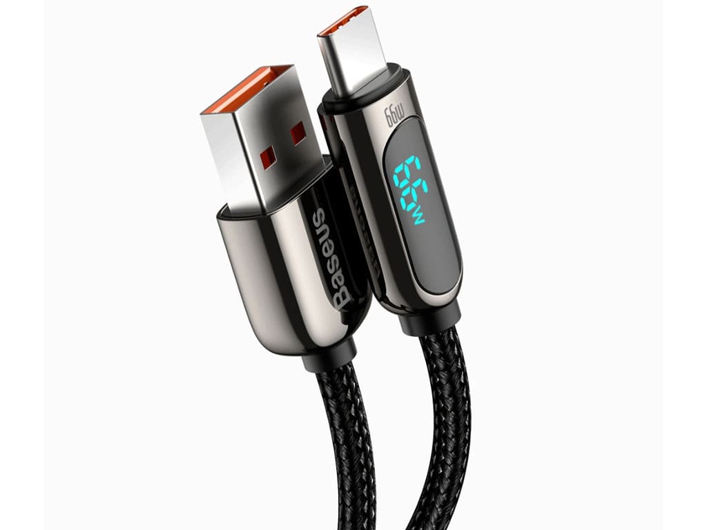 نمایشگر کوچکی برروی کانکتور کابل یواسبی به تایپسی CASX020006 بیسوس قرار دارد که وظیفهی آن نشان دادن میزان توان ورودی به دستگاه متصلشده است. هر بار که گوشی هوشمند خود را با استفاده از این کابل شارژ میکنید، میتوانید سرعت شارژگیری آن را بهصورت لحظهای از روی این صفحهی کوچک ببینید.